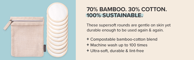 • 70% BAMBOO. 30% COTTON. 100% SUSTAINABLE: These sustainable alternative rounds are gentle on skin & the planet. Suitable for all skin types—even sensitive skin.