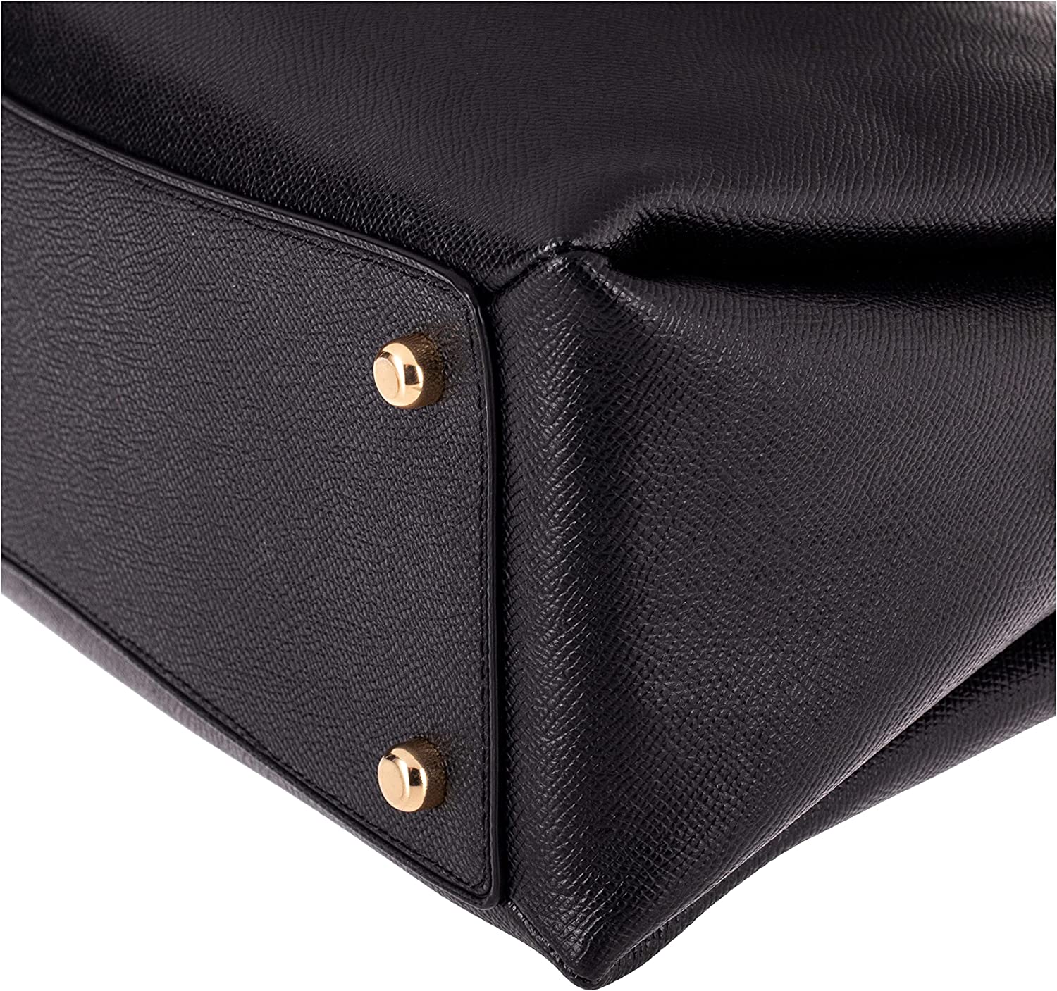 The crossgrain leather Lillie carryall is a structured everyday bag featuring top handles and a detachable strap for versatility. Crossgrain leather. Inside zip and multifunction pockets. Center zip compartment. Snap closure, fabric lining. Handles with 4 3/4" drop. Outside open pocket. Detachable strap with 20" drop for shoulder or crossbody wear. 12 3/4" (L) x 8 3/4" (H) x 5 1/4" (W)