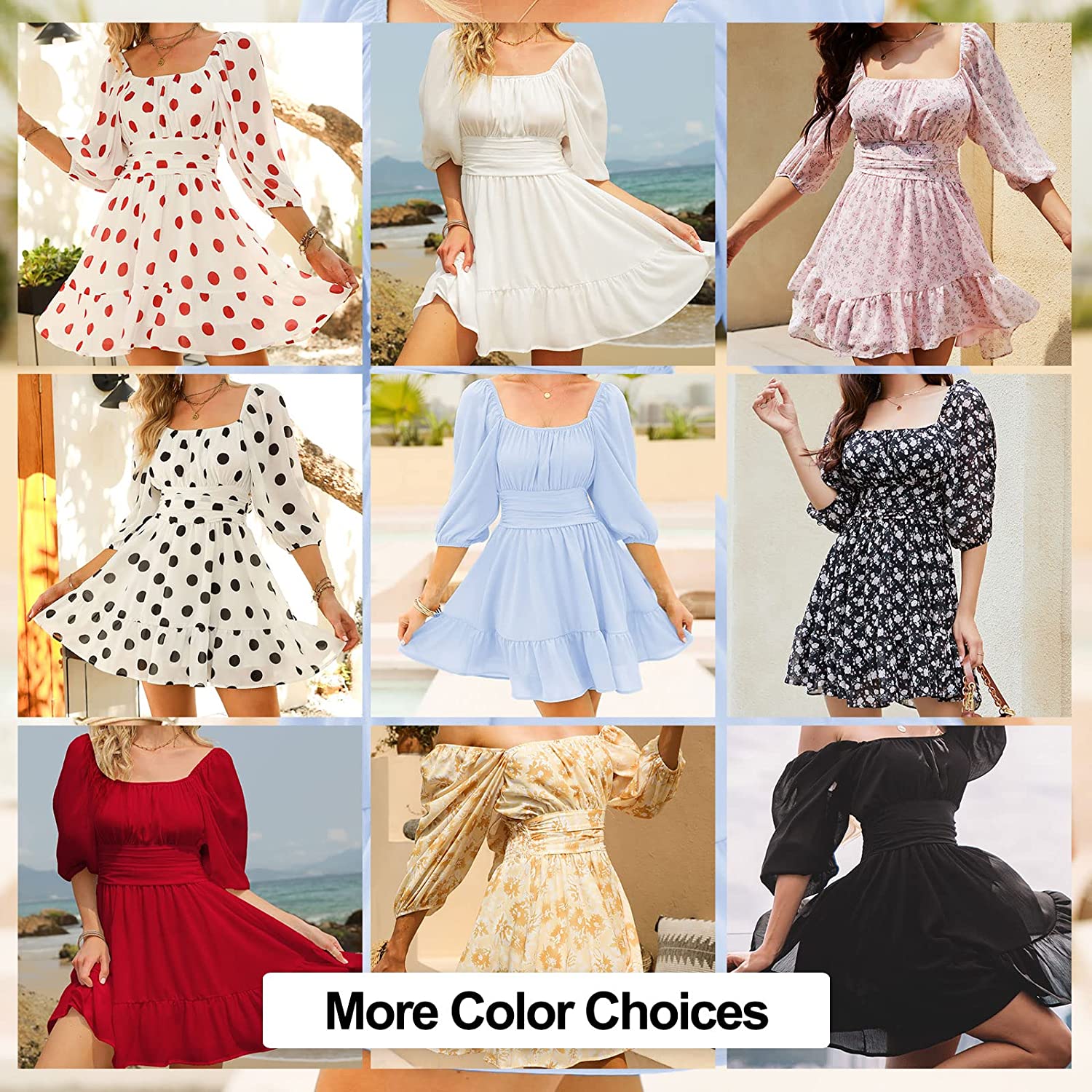 Design: square collar and lantern sleeves bring a retro style. The sleeves can be pulled down for a cute off-shoulder look. The elastic smocked waist dress shows the body curves. Sexy open back with adjustable self-tie bowknot. Pretty ruffle hemline finish.