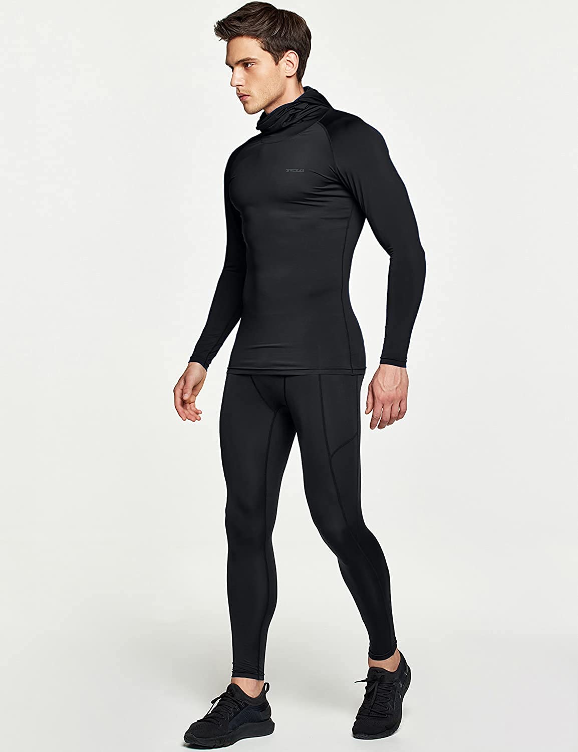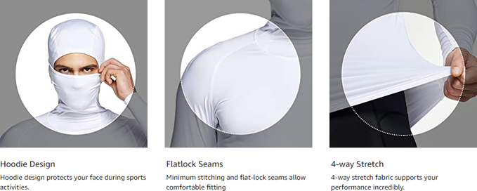 TSLA Men's Long Sleeve Workout Shirts Hoodie with Mask, UPF 50+ Cool Dry Fit Sports Compression Shirts