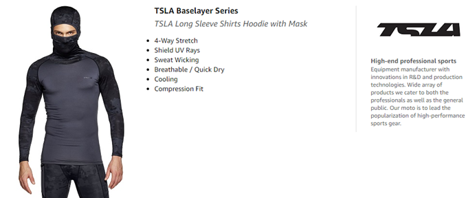 TSLA All Season Baselayer Series designed for releases heat and wicks moisture with a cooling effect.