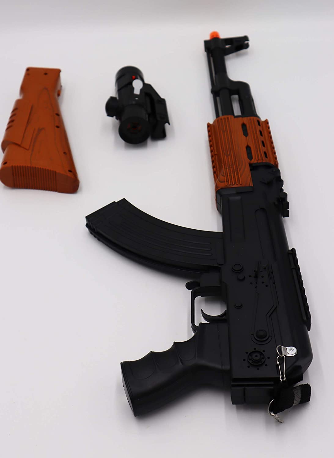 Cool Vibration and Firing Sound Effect. JOYSAE’s AK-7744B gun toy vibrates and make shooting sound effect while pulling the trigger. This electronic sound effect simulates both firing and loading bullets. Brings you right into the battle field.