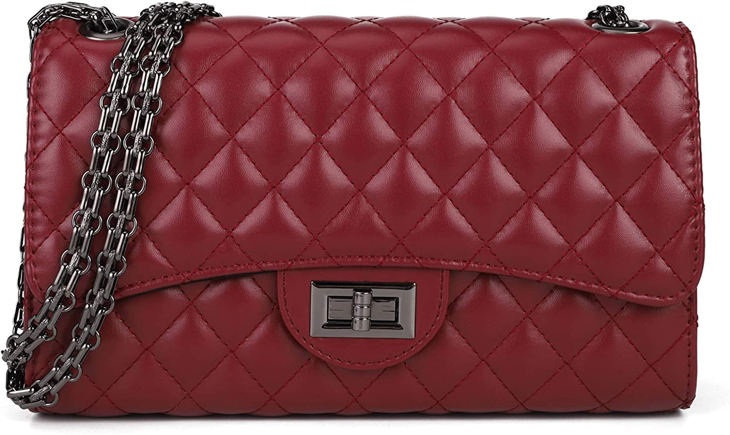 Quilted Crossbody Bags for Women Leather Ladies Shoulder Purses with Chain Strap Stylish Clutch Purse