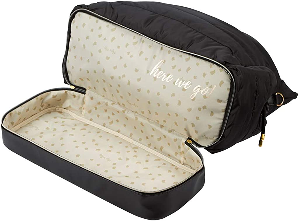 • Itzy Ritzy’s Dream Weekender is a roomy and spacious puffer-style bag that features 12 total pockets (6 exterior and 6 interior), including 2 insulated bottle pockets and designated pockets for paperwork and a laptop