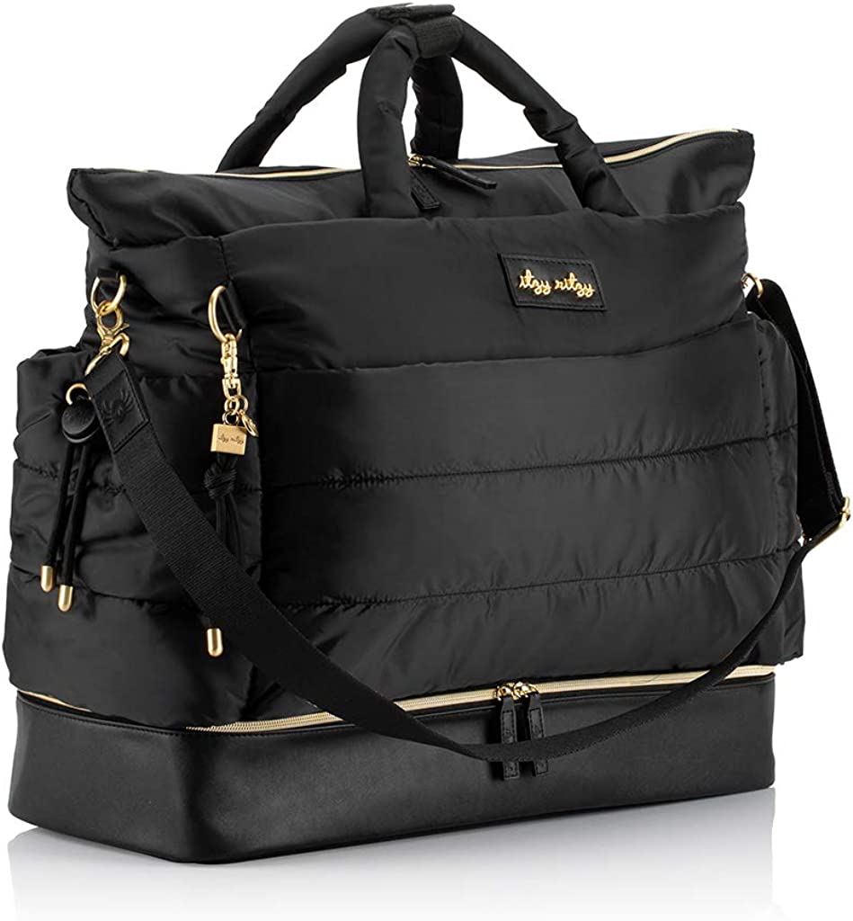 Itzy Ritzy Dream Weekender Lightweight Travel & Hospital Bag Features Base Compartment & 12 Pockets, Midnight Black