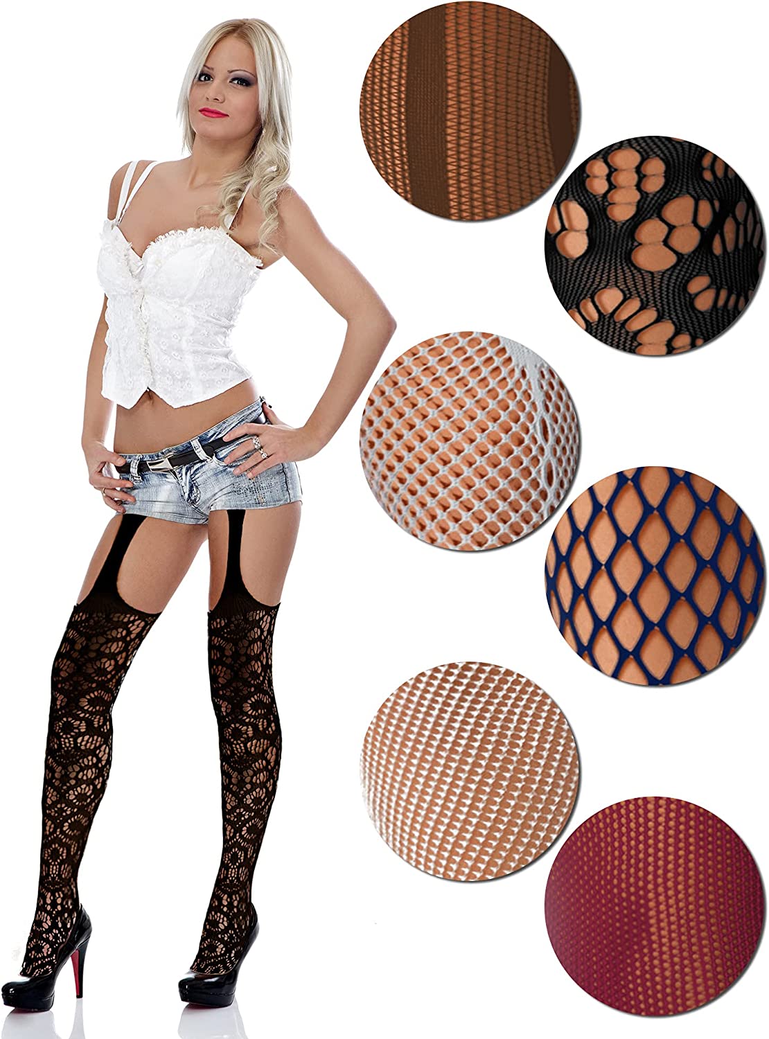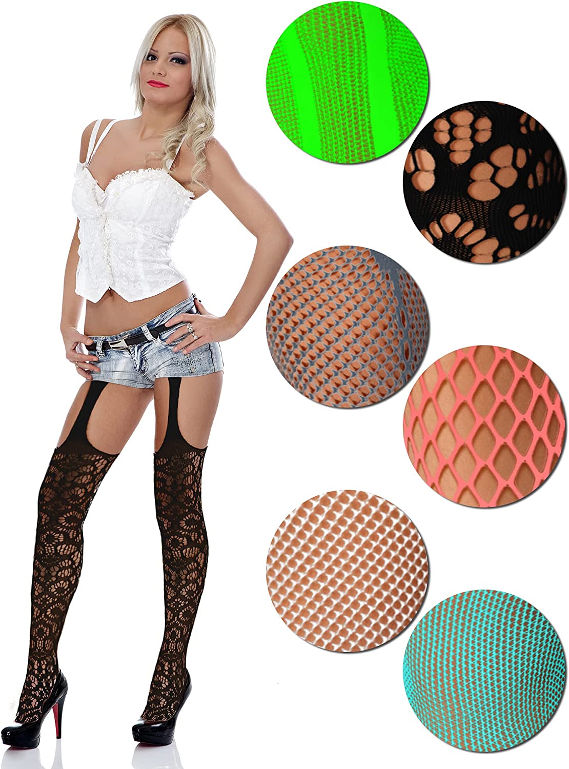 6 Pairs Women Fishnet Thigh-High Stockings Tights Suspender Pantyhose Stockings for Women Girls