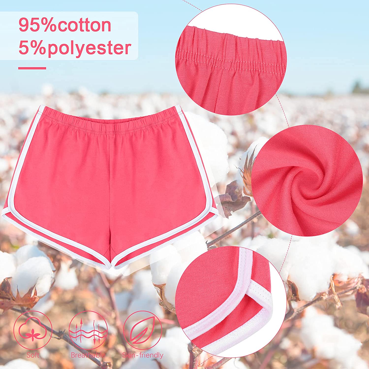 • SOFT MATERIAL: Women's sports shorts are made of 95% cotton fabric, breathable and sweat-absorbing, skin-friendly, non-deformed, elastic and smooth, and comfortable to wear. Super-stretched yoga shorts provide maximum comfort and protection in every pose and movement.
