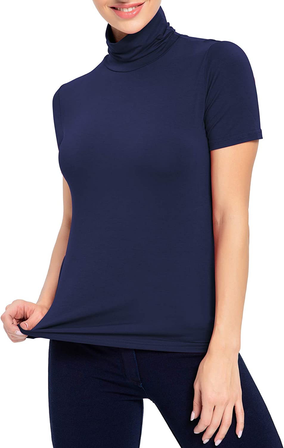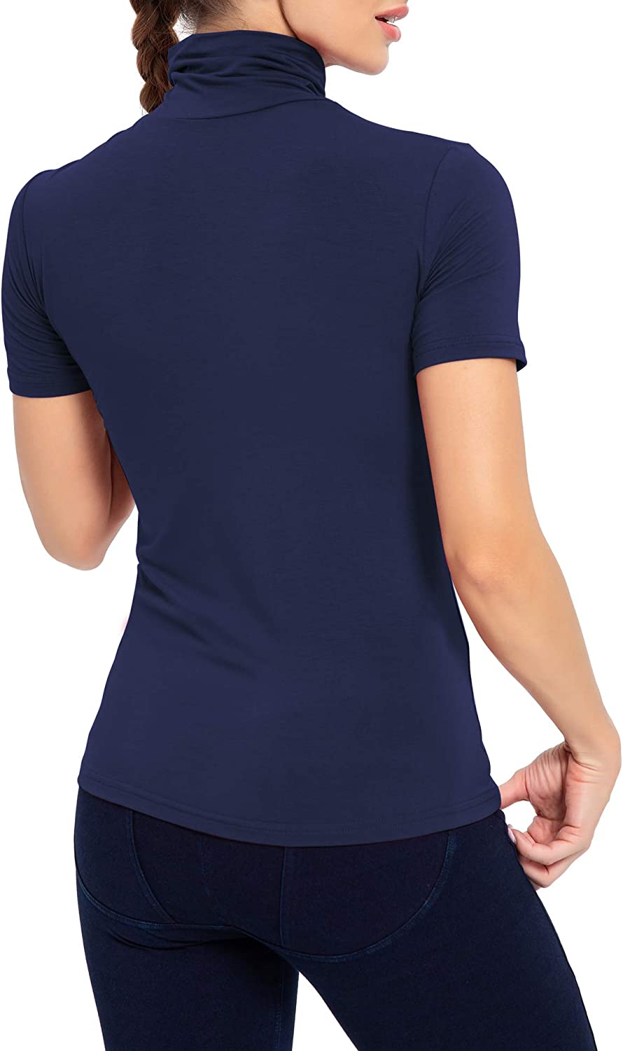AUHEGN Women's Mock Turtleneck Top Short Sleeve Lightweight Active T-Shirt (S-XXL)