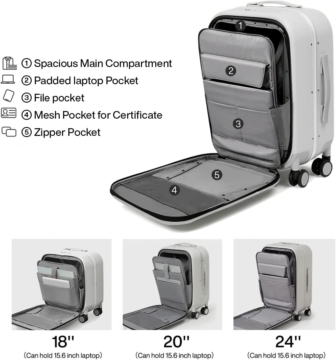 • 【INNOVATIVE DESIGN】Front Laptop Pocket helps quickly access your essentials like 15.6'' laptops, documents and more, assist you save time. Stylish and beautiful design, this hard luggage has won the Kapok Award.