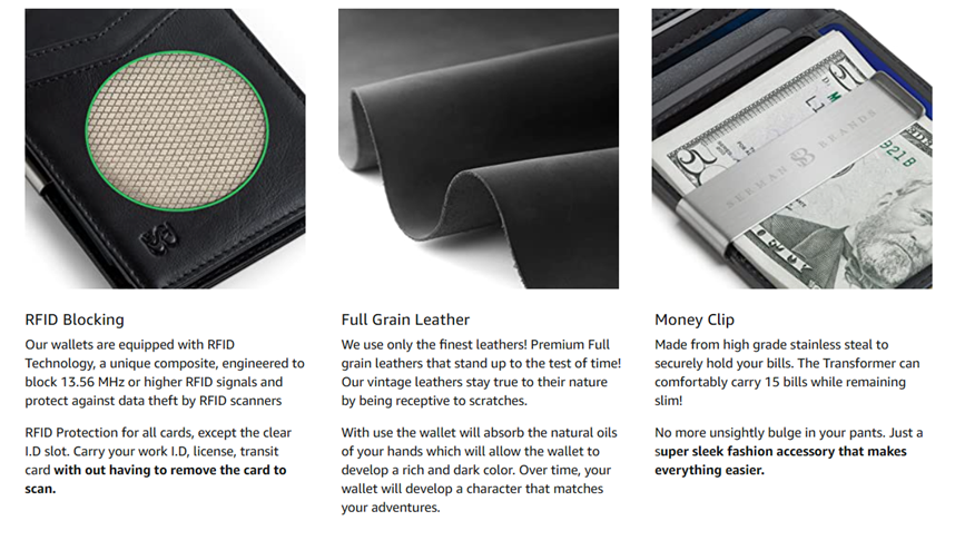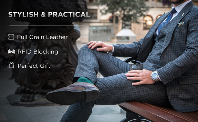 STYLISH & PRACTICAL – FUNCTIONALITY AT ITS BEST. Finally! A wallet that will meet your everyday needs and fits in your pocket without bulging. 2 convenient outside card slots made for your most used cards; Instantly have the cards you need to save time and energy. Photo ID slot located on the outside of the wallet; a smart solution to instantly access your ID. Innovative stainless-steel money clip securely holds up to 15 bills; quick payments and organization made easy!