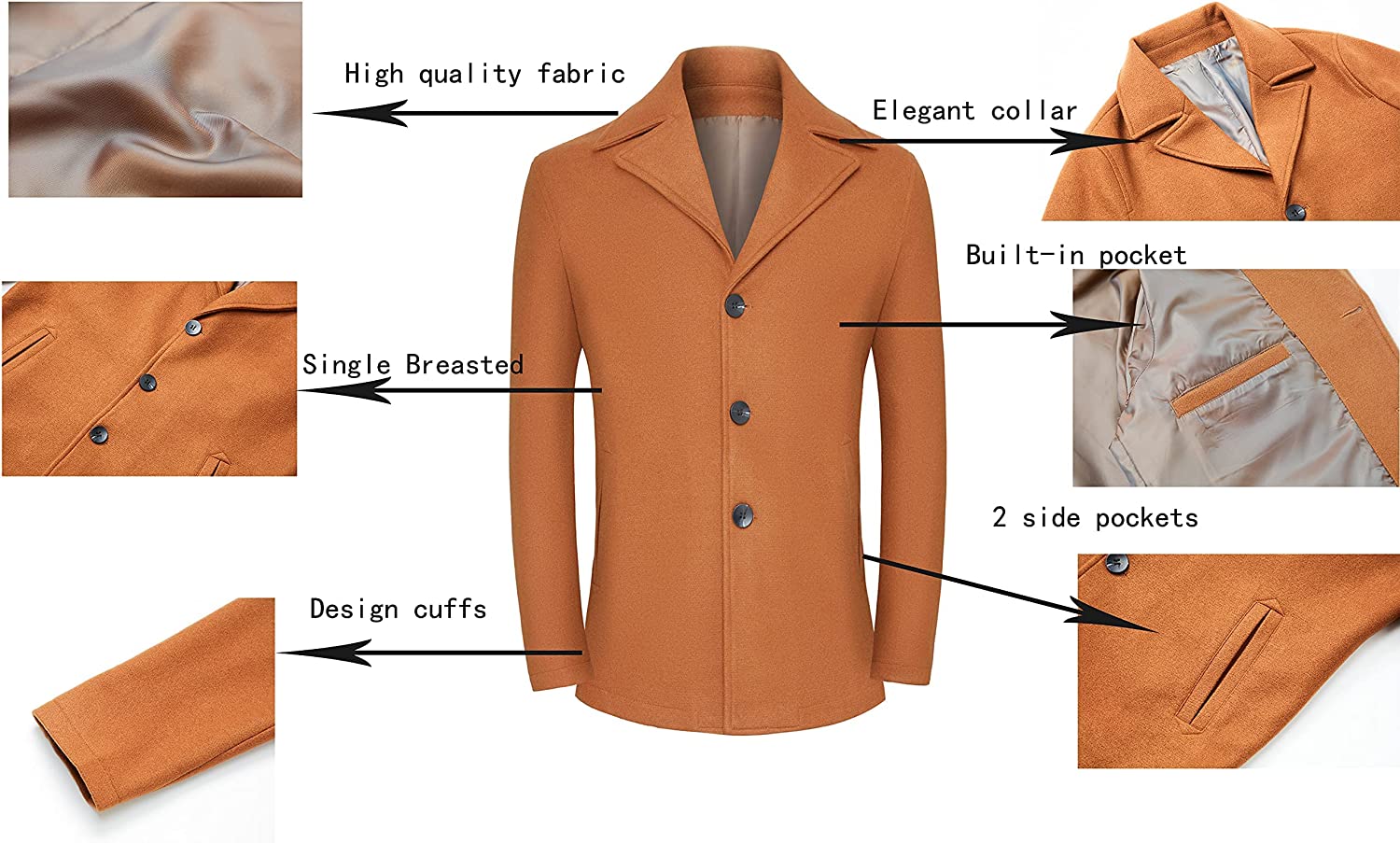 Material of 10% faux wool, 90% polyester,The mixture of the two materials makes the whole clothes more upright and lighter,High-quality fabrics, high-quality production technology, withwith high-quality lightweight lining,While being comfortable and warm, and not as heavy as other coats.