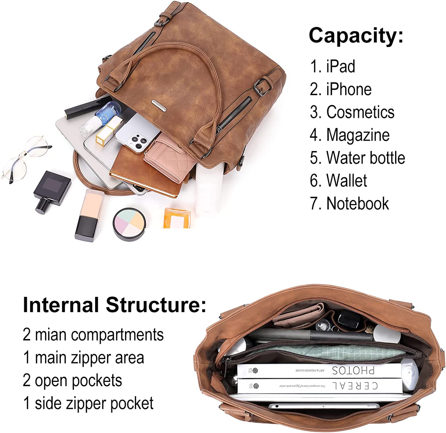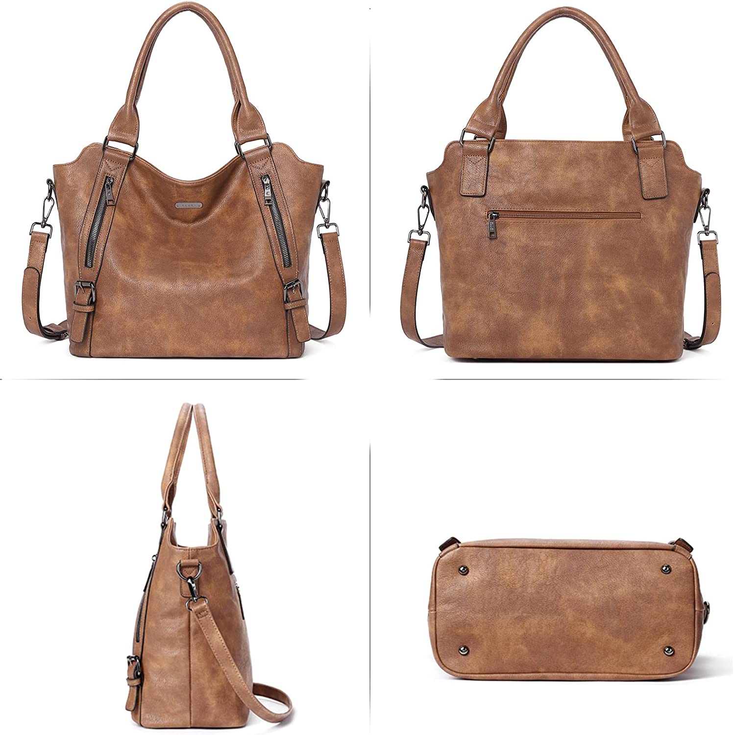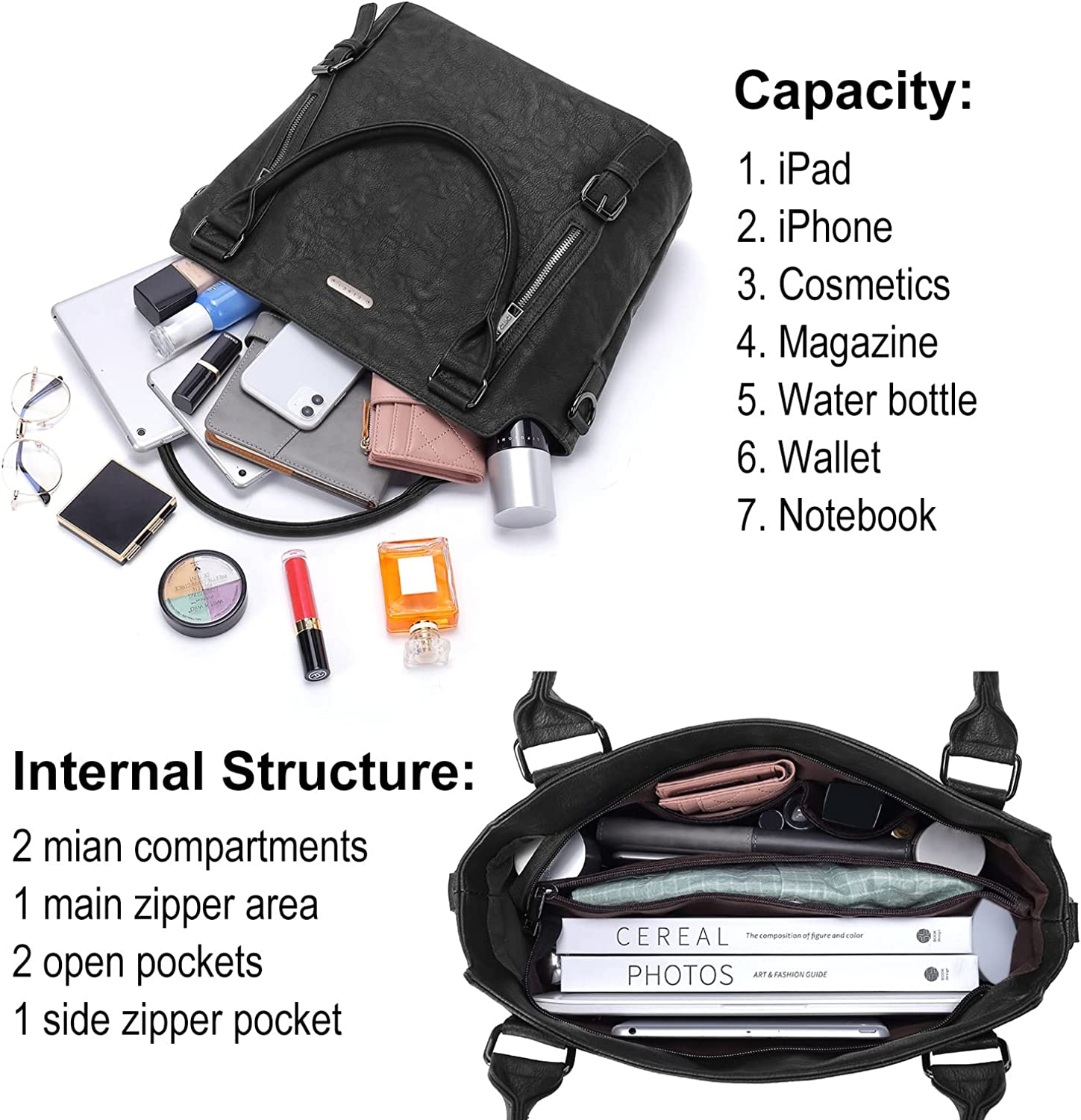 • 【Easy to organize】: This handbag features multi-pockets: 2 main compartments(one has internal zip pocket and another one has 2 slot pockets), 1 center zipper compartment, 2 front zipper pockets, 1 back anti-theft zipper pocket. The structure design can organize your things and ensure safety.