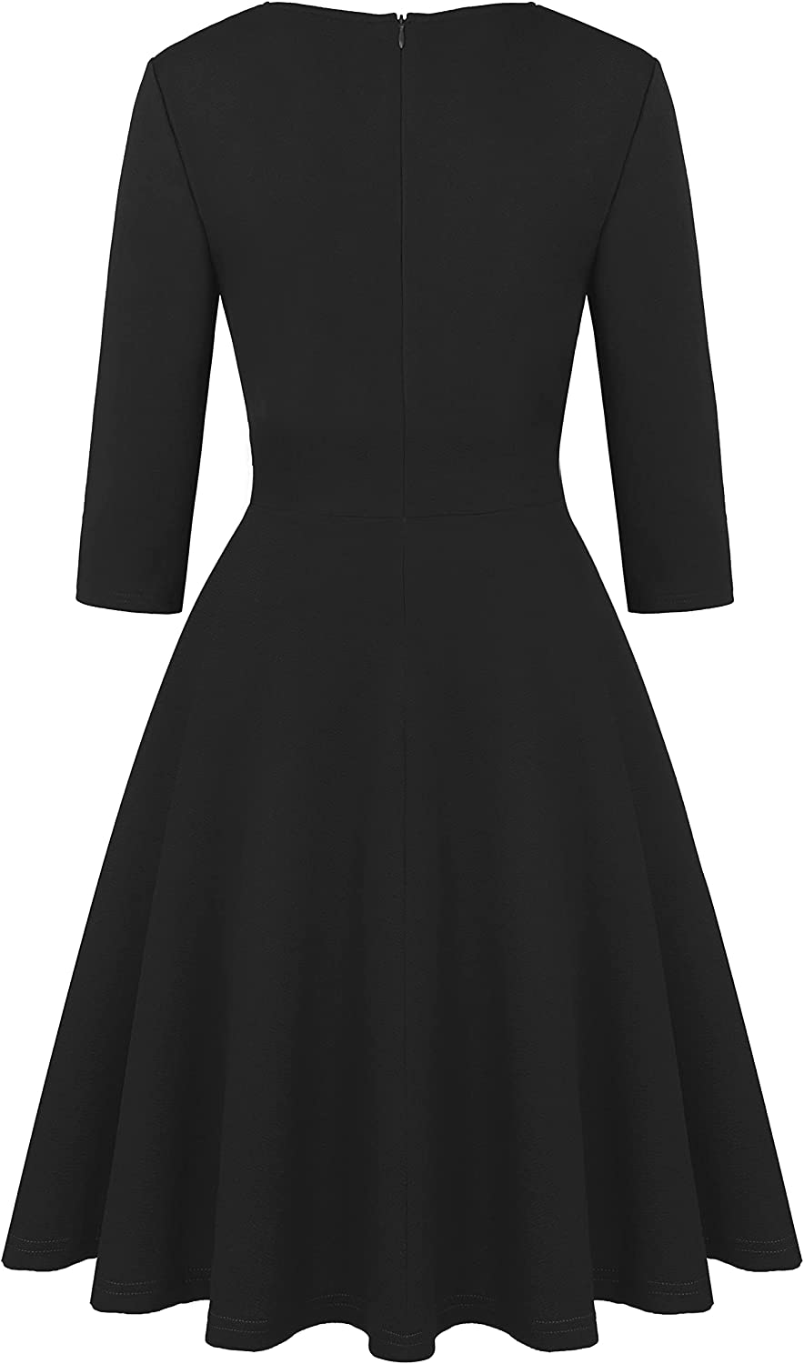 • FIT AND FLARED DRESS: The women's party cocktail swing business dresses very flattering fit — true to size. Length is knee-length. It is the perfect length to wear out and works well for curvy girls. Good chest coverage and it doesn't show too much cleavage and sexy enough. Invisible zipper closure on the back to protect your skin better.
