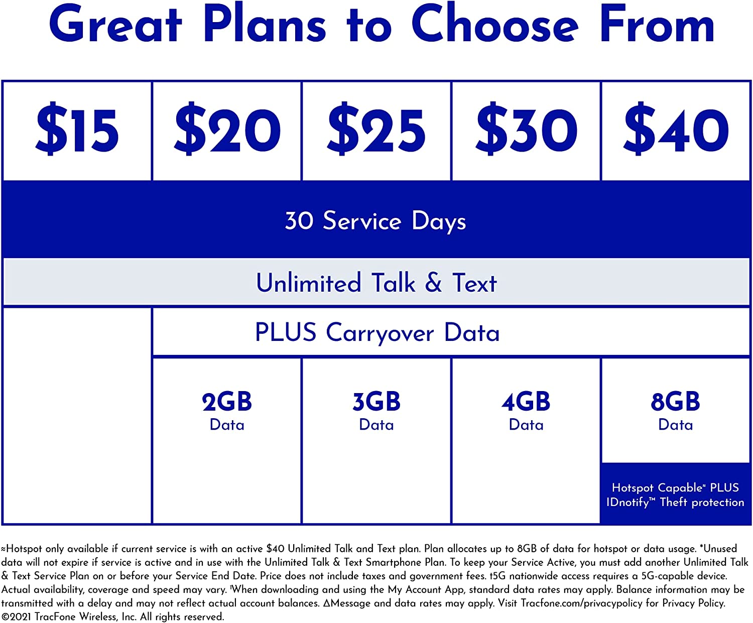 Unlimited Talk, Text and Data plans starting as low as dollar 20/month