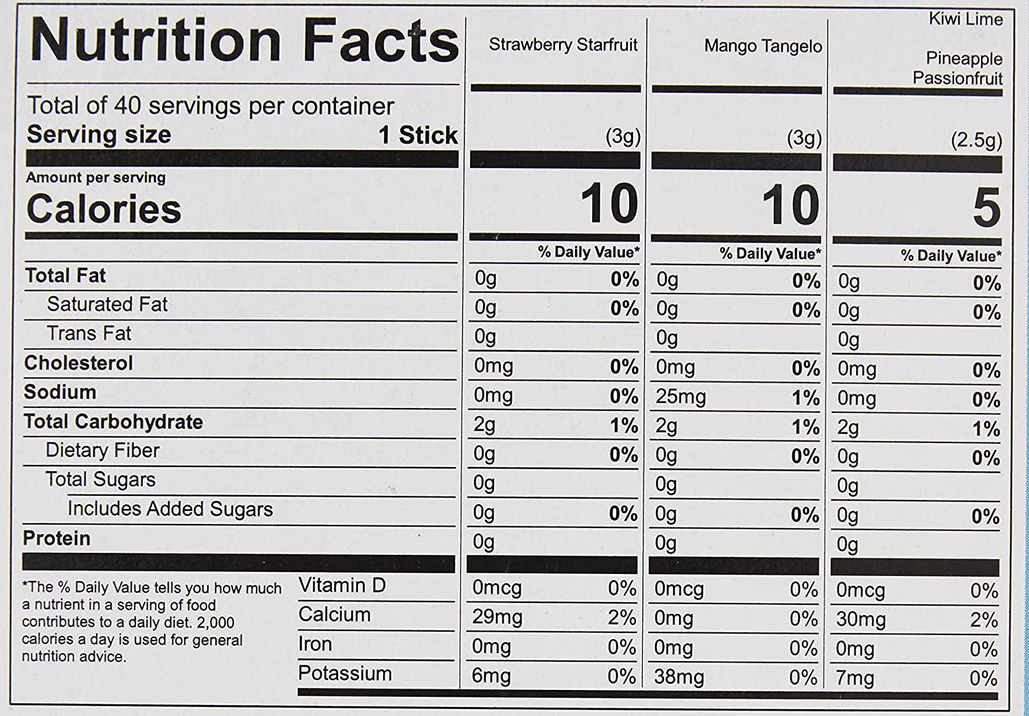 • VARIETY PACK –With 40 sticks included, you’ll get a taste of 4 different fruity flavors including Strawberry Starfruit, Mango Tangelo, Kiwi Lime, and Pineapple Passionfruit