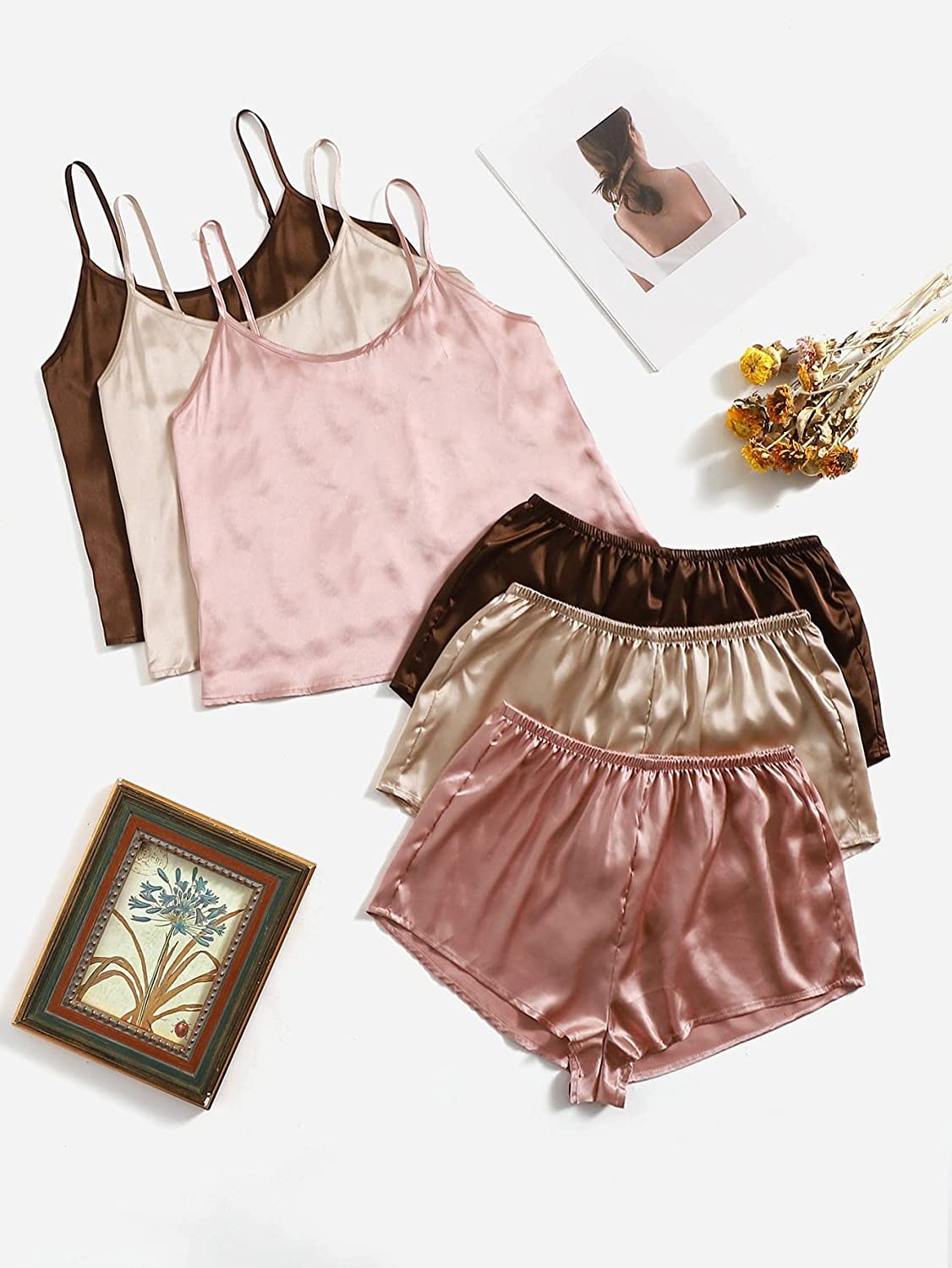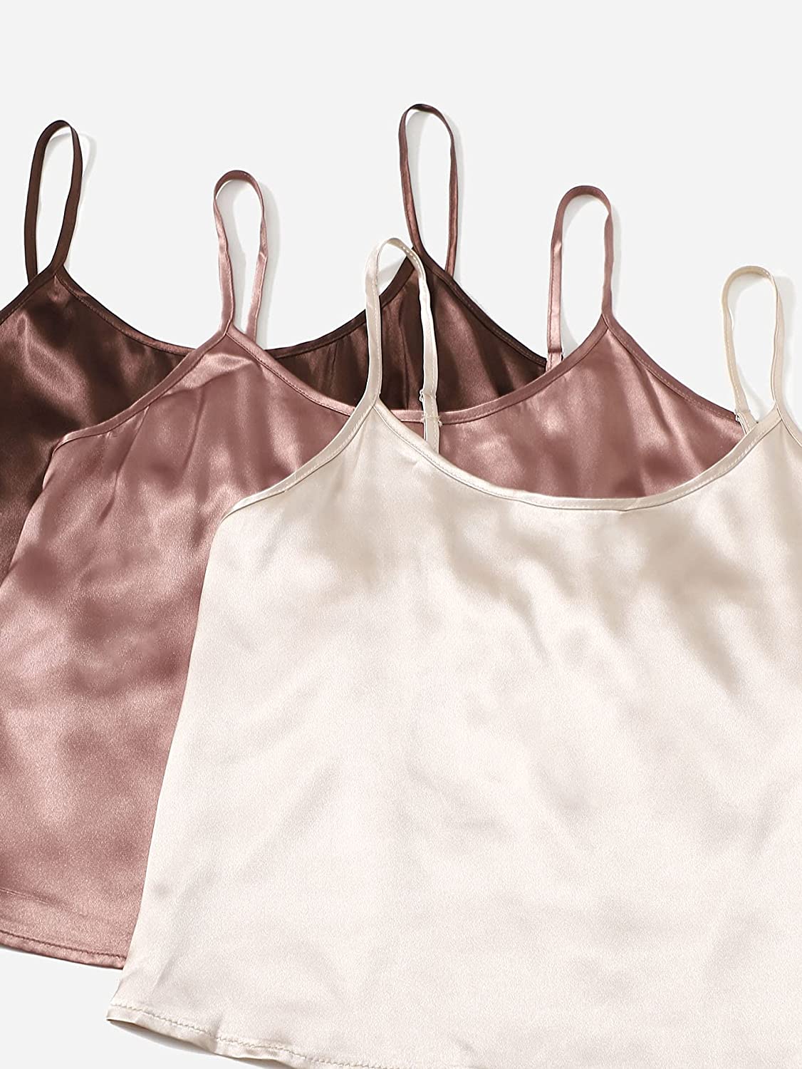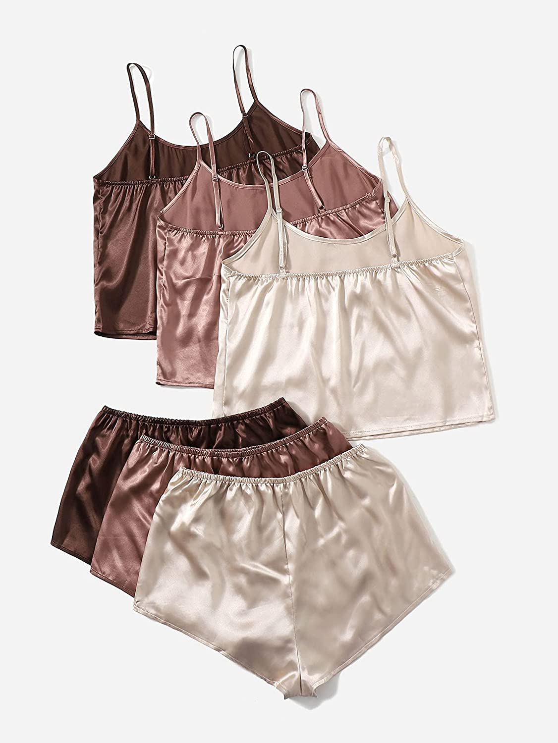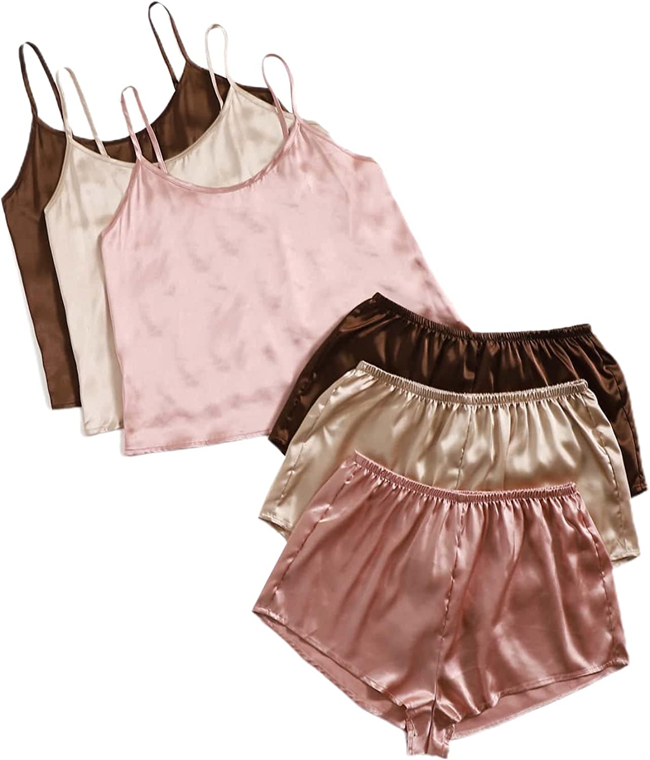 SheIn Women's 3 Sets Satin Pajama Set Sleeveless Crop Cami and Elastic Waist Shorts Sleepwear Lounge Set