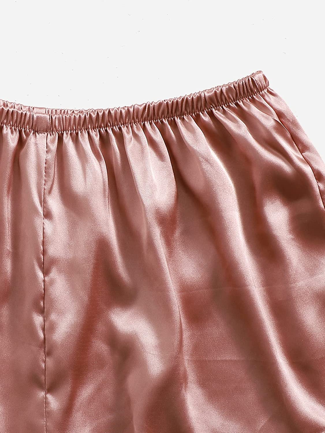 Sleeveless, v neck, satin pajama set, solid cami with adjustable stretchy straps, the elastic waistband of the shorts fits comfortably