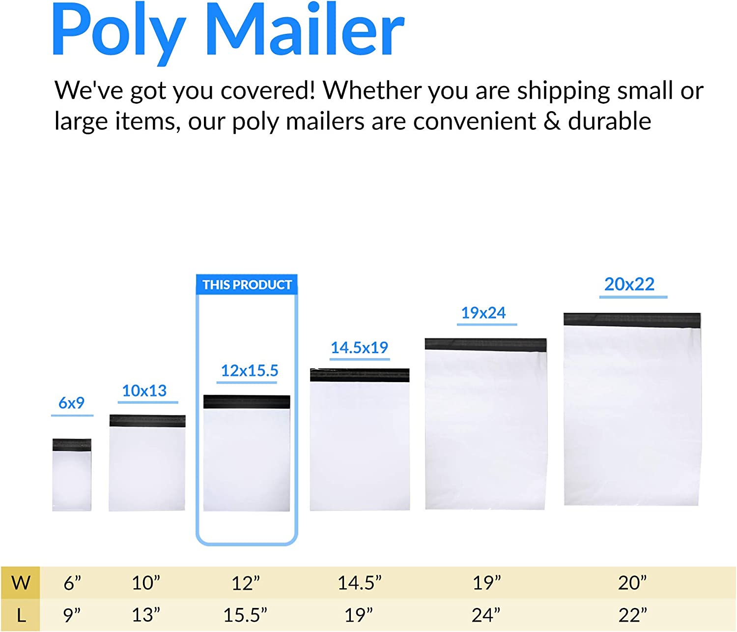 Poly Mailers | 12" x 15.5" | White | Self Sealing | 220 Pcs
