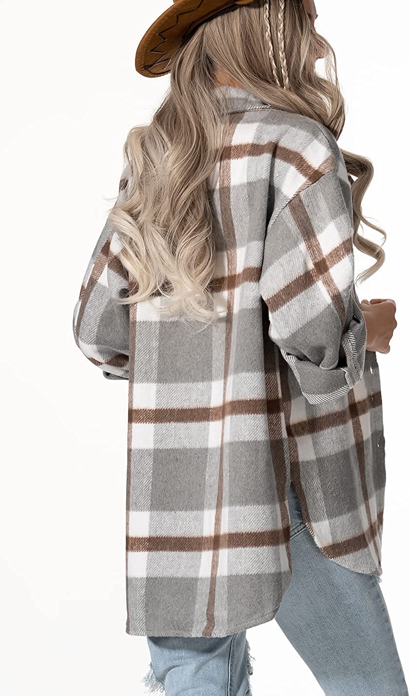 • Feature: fall winter wool blend plaid shirt jacket, casual winter jacket for women, lapel collar turn-down collar long sleeve oversized flannel shackets jacket with front button placket, color block contrast plaid print button down shirts for women lady girls