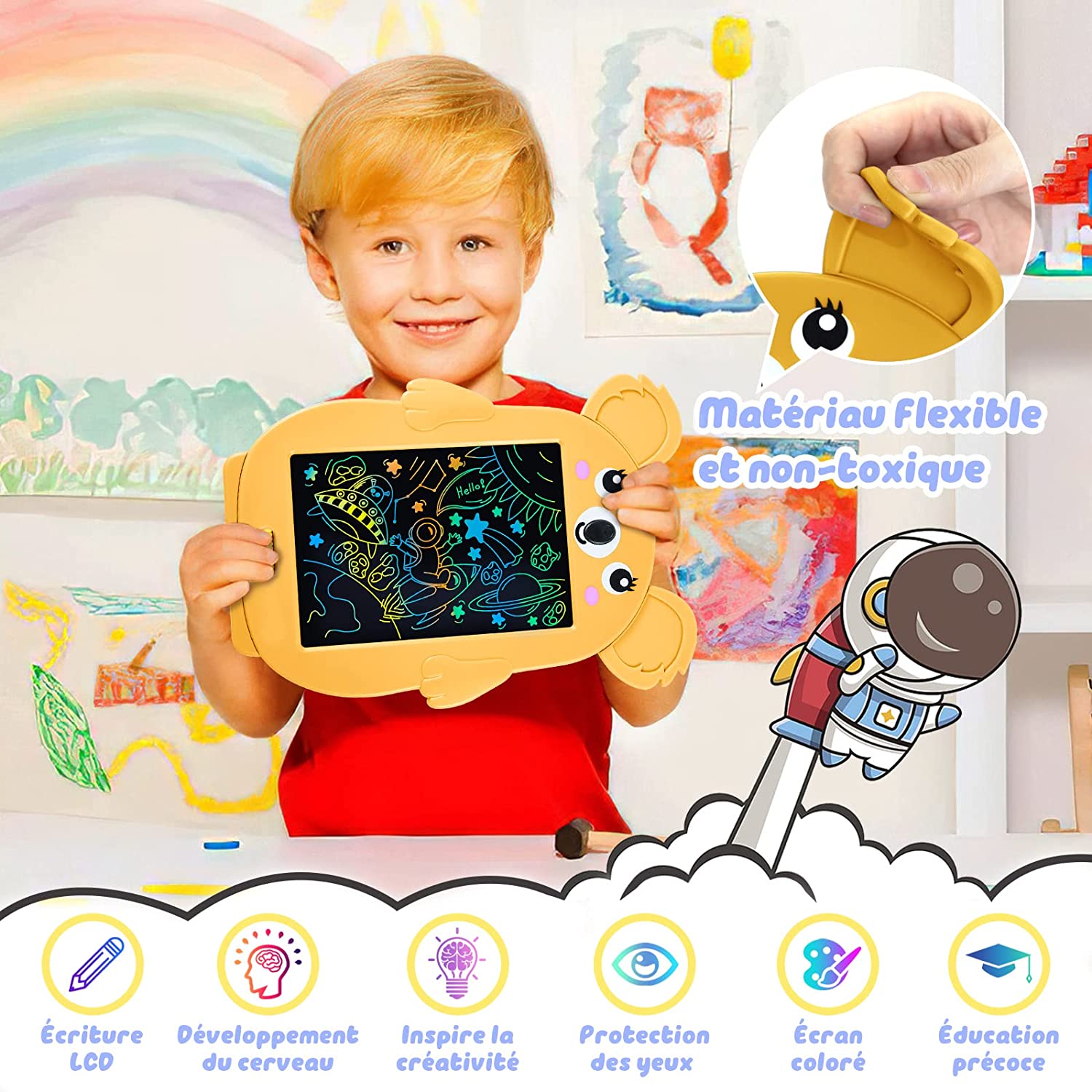 ?【Eye Protection & Safe 】The writing tablet features the latest LCD flexible screen, no blue light, radiation-free,protects the eyes and keeps your child away from chemical pigments and dust that can irritate the skin and lungs.