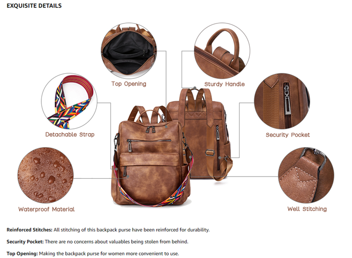 • 【PRACTICAL DESIGN】 This fashion backpack purse is suitable for various occasions(Business, travel, dating, etc.). And we insist this women backpack purse is a great gift for yourself and friends on Christmas, Mother’s Day, Valentine's Day and birthday.