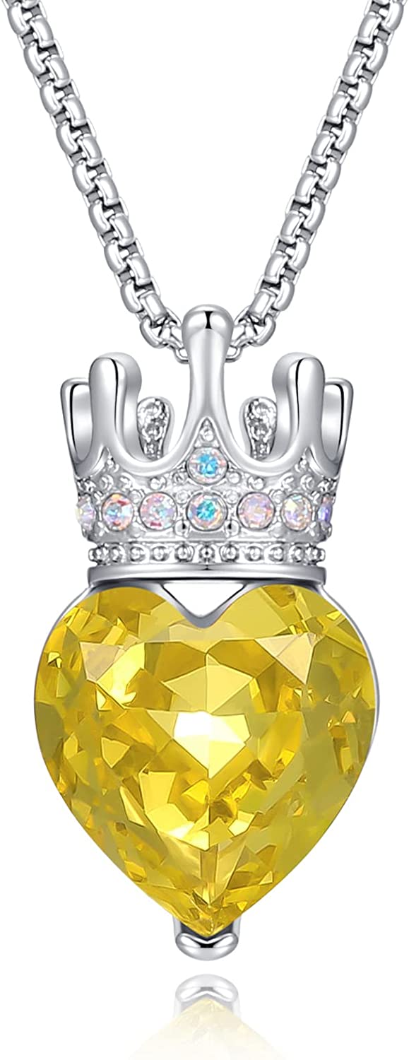 CDE Princess Queen Crown Necklace for Girls Women Love Heart Pendant Necklaces with Birthstone Crystal, Christmas Valentine’s Day Birthday Party Jewelry Gifts for Daughter Granddaughter Niece Teen Gir