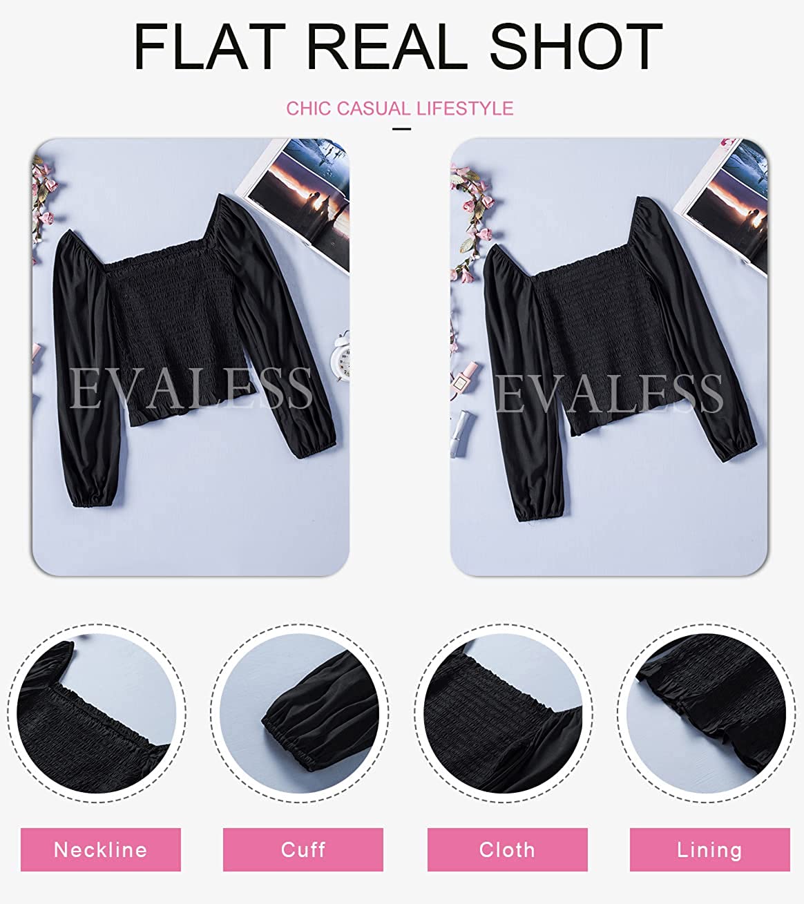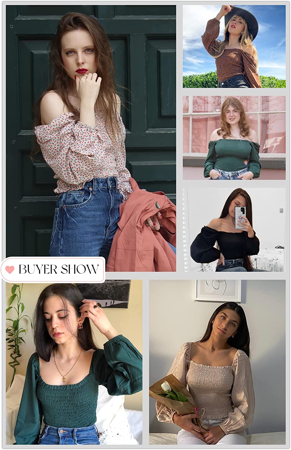 EVALESS Blouses for Women Puff Long Sleeve Square Neck Tops Off The Shoulder Floral Ladies Tops and Blouses