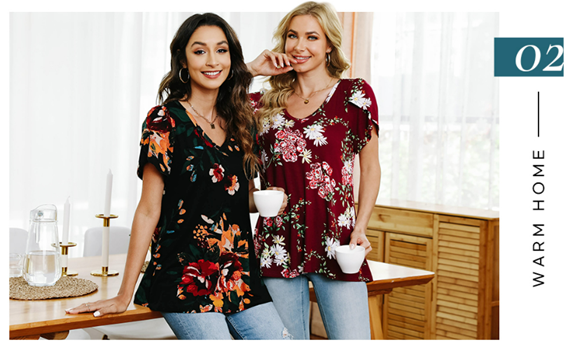 ❤ 【 Features 】 casual tunic top, v neck tops tee, petal short sleeve tshirts, stretch loose blouse, solid color and print, on the hip length, sexy, plain, trendy and elegant.