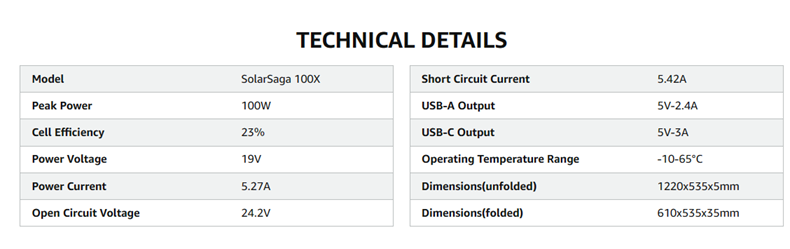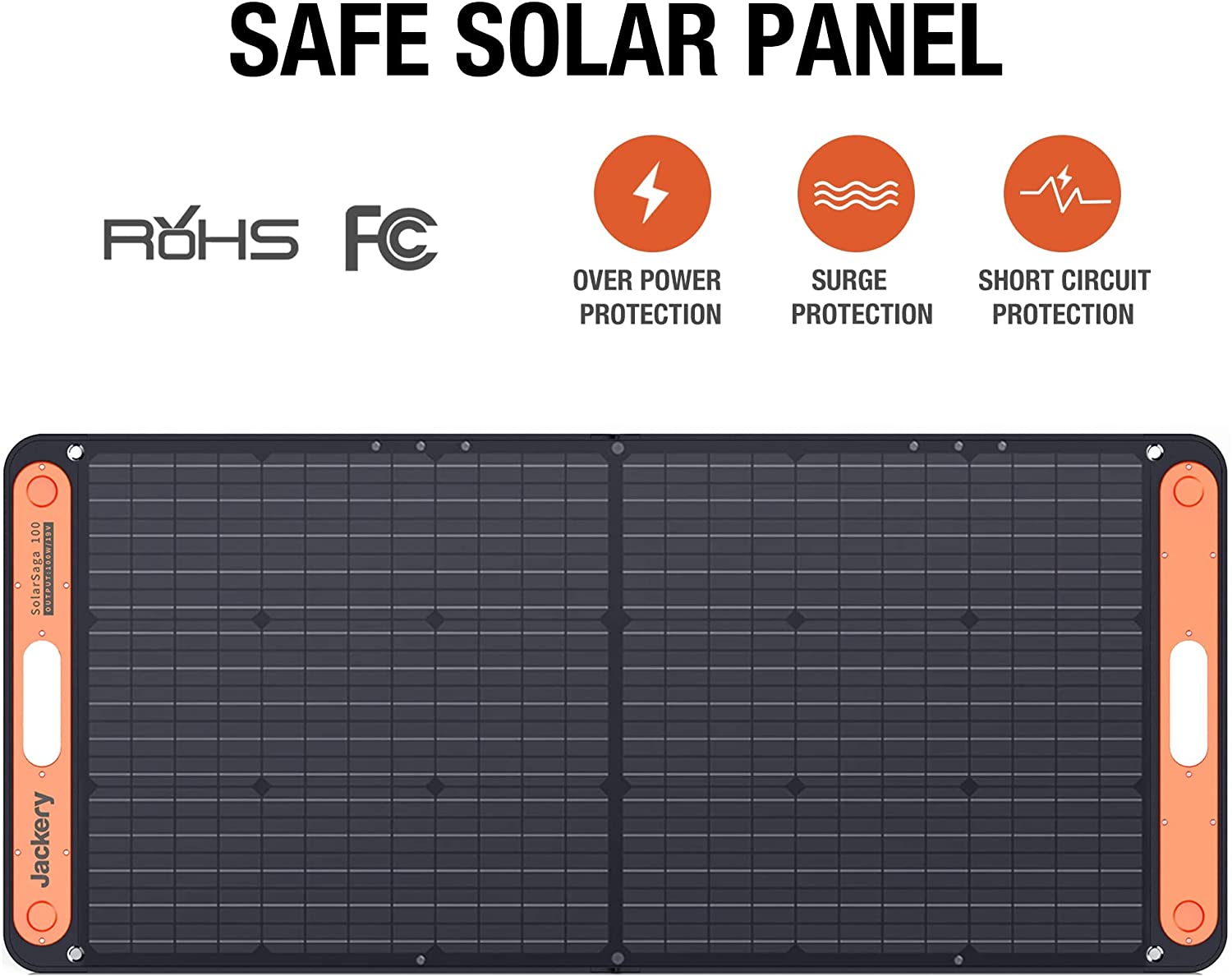 • What you get: 1*Jackery SolarSaga 100X Solar Panel. Note: Jackery is now providing a new SolarSaga 100X with no change in performance or functionality, but differentiates only in appearance.