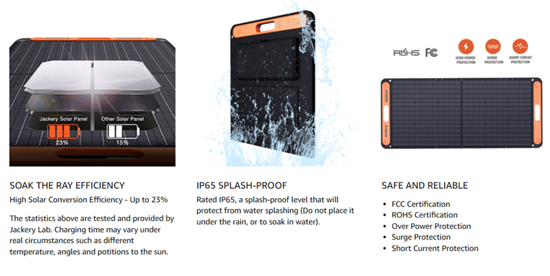 • Easy Setup & Kickstand Included: The Jackery Solarsaga 100X features 2 kickstands that can be placed firmly on any surface ground. With just a few seconds of setup, the foldable solar panel starts soaking energy from the sun. The TPE rubber handle allows you to carry around easily when taking off-grid adventures.