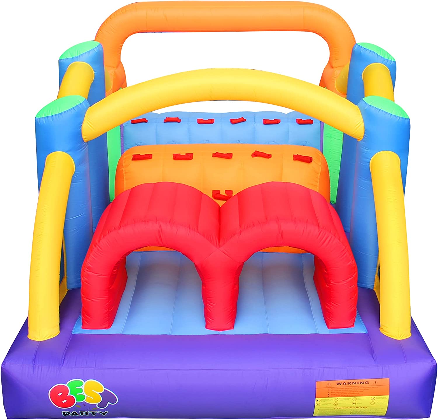 BESTPARTY Inflatable Obstacle Course Bounce House Castle with Large Slides Bounce Area and Obstacles Inflatable Bouncer House Jumper with Blower
