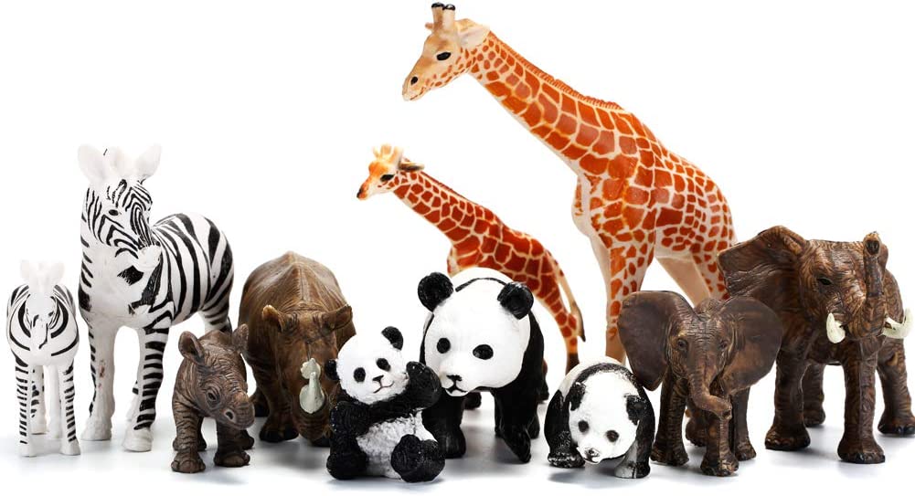 Realistic african animal figures are designed for little hands and child' imagination. The parent-child zoo animals set includes a assortment of amazing jungle animals in realistic colors. Your children will love this set of friendly lovable animals figurines.