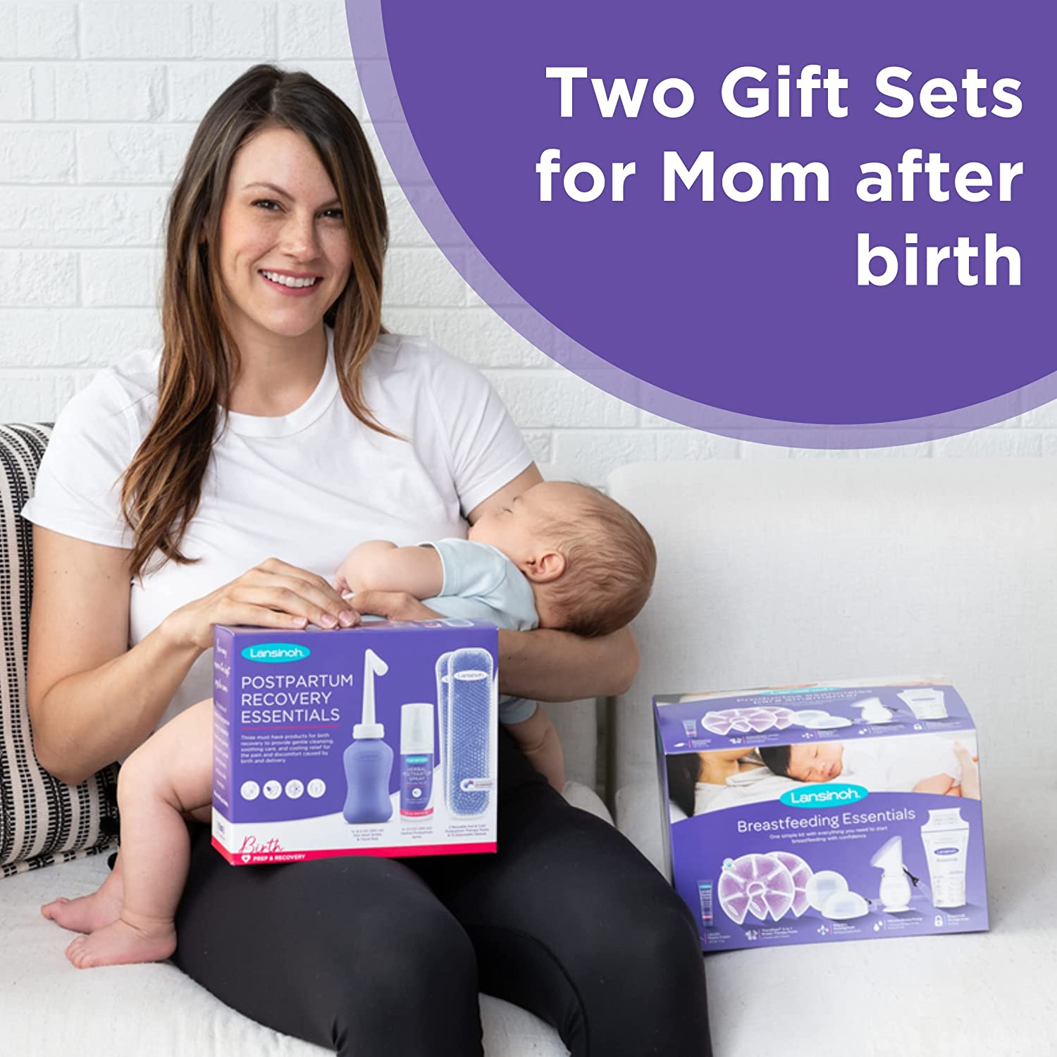 Lansinoh Breastfeeding Essentials for Nursing Moms: Nipple Cream, 48 Nursing Pads, 25 Breastmilk Storage Bags, 2 Hot & Cold Breast Therapy Packs, Silicone Breast Pump, 77 Pieces, Baby Shower Gift