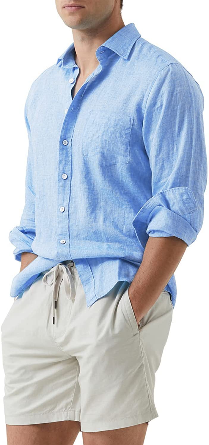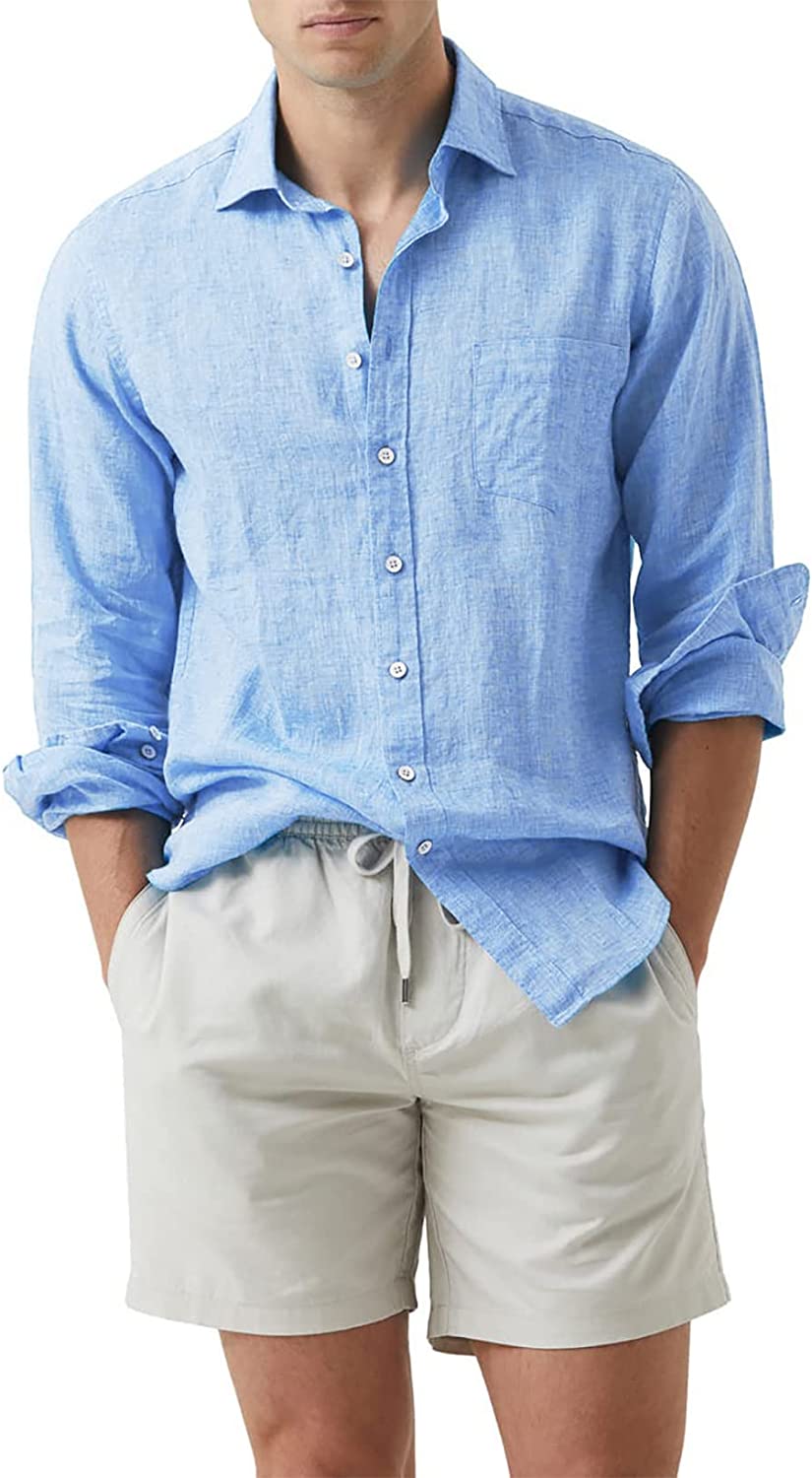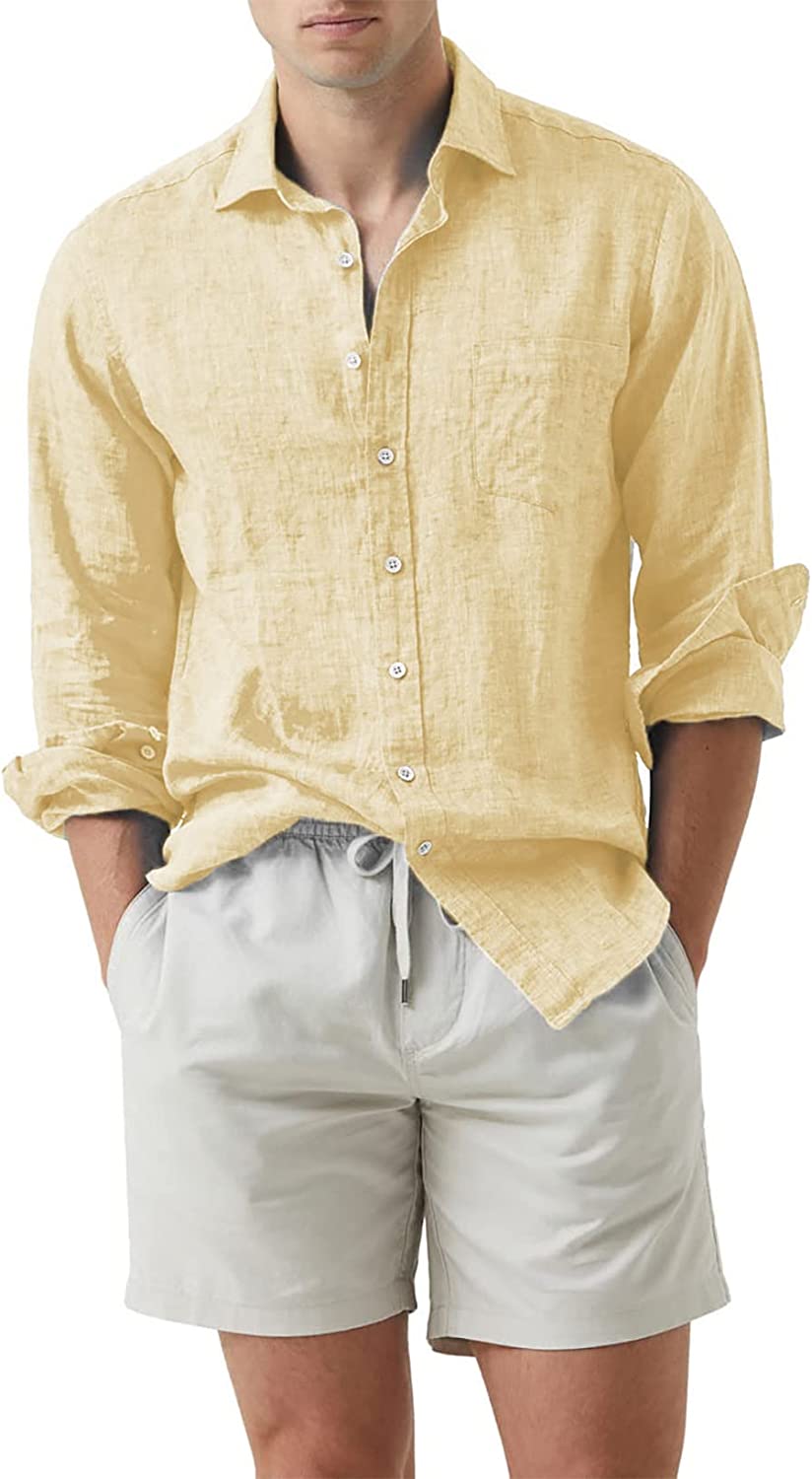 JMIERR Men's Cotton Linen Casual Stylish Button Down Shirt Long Sleeve Dress Shirts