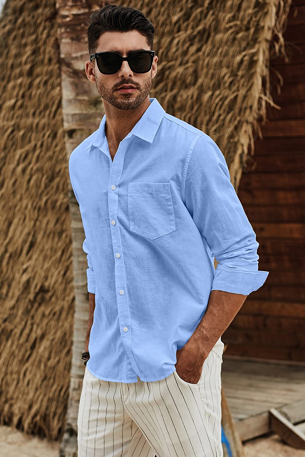 • Material: JMIERR fashion mens button down long sleeve dress shirts is made with high-quality cotton linen fabric, breathable, lightweight, soft, friendly to skin.You can wear it as a casual shirts or as a dress shirts. We have taken a real video for each color of this men's Linen Shirt for your reference.