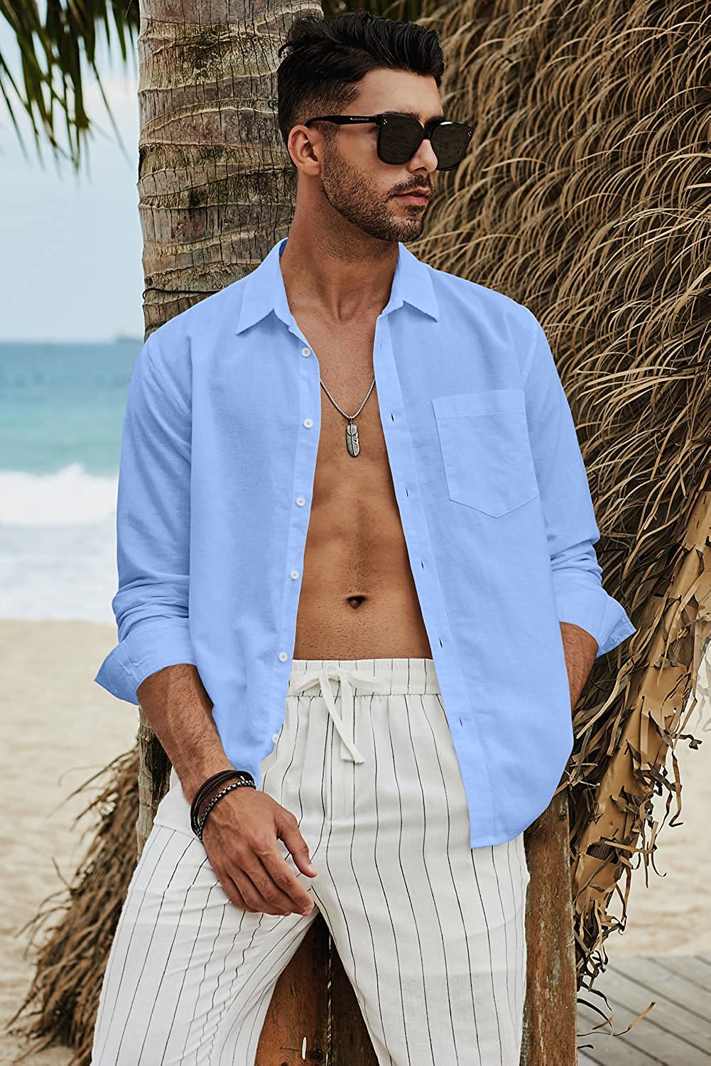 • Features: Cotton linen shirts for men, solid color button down shirts, cotton linen casual shirt, sleeve wear as 3/4 sleeves or full sleeve.