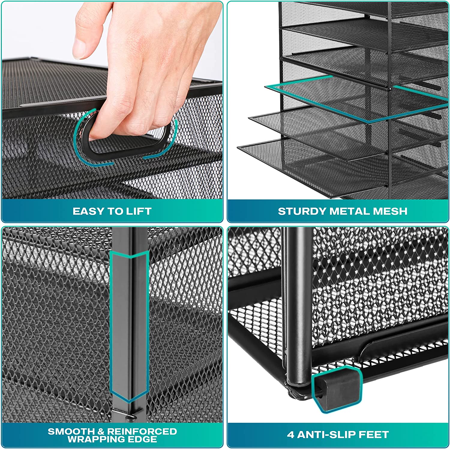 【8-Tier Large Capicity】Measures 12.6 L x 9.06 W x 16.5 H in total, 2.2 inches for each tray. The desktop paper tray organizer is big enough to hold more files and classify your paper more detailed