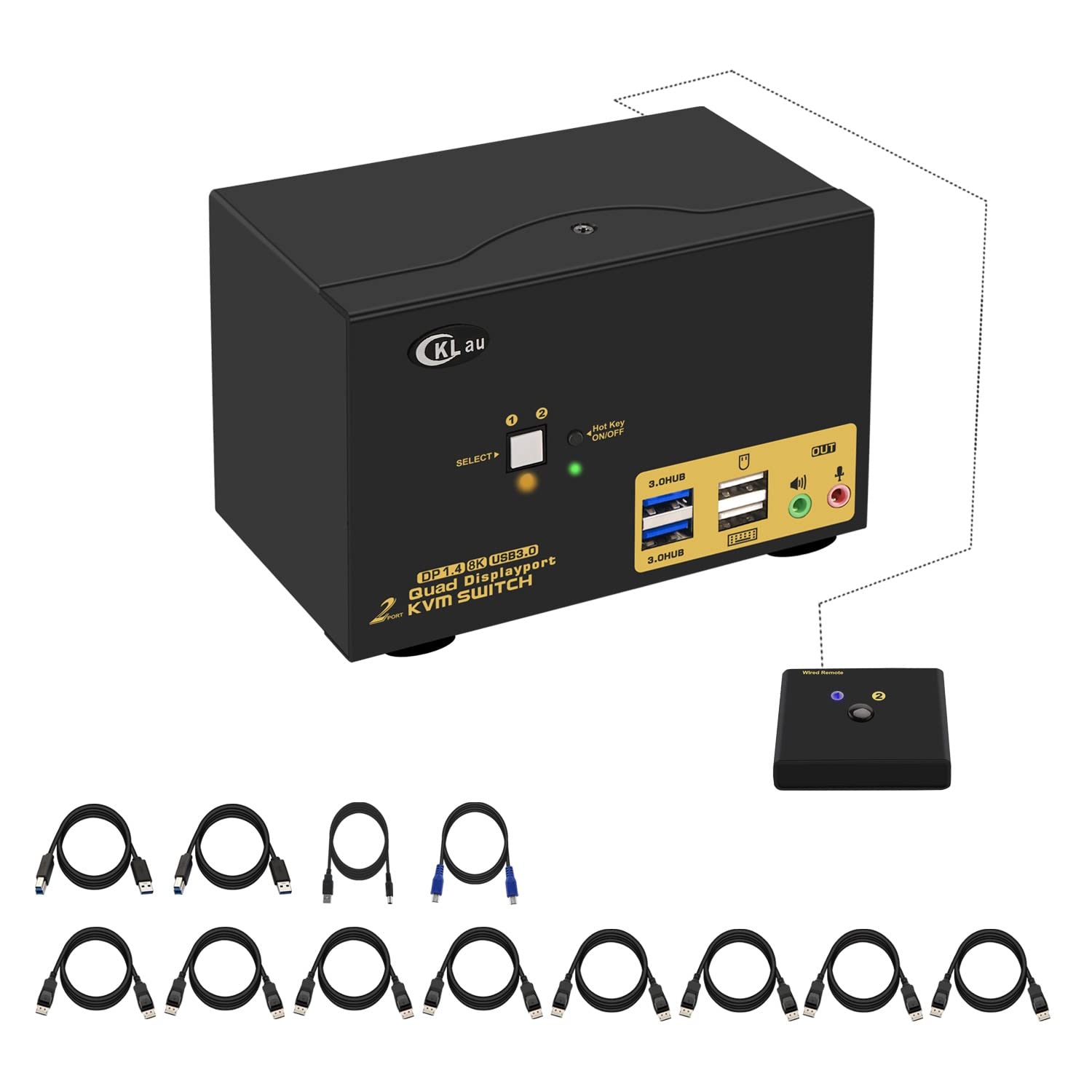 5. Displayport 1.4 KVM USB 3.0 Switch: Support auto detection, auto scan, waking up, with memory function in case of power-down. It can switch by mouse or keyboard independently, even without USB signal input, such as Apple TV, Android TV box, etc. And it can enter into BIOS interface directly. Metal case body with a premium finish, space-saving design with non-slip foot pads.