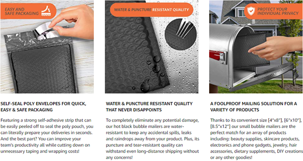 - ORDER YOURS WITH PEACE OF MIND: In PackageZoom we care about our deliveries, as much as you do. That’s why all our black padded envelopes are backed up by a 30-Day Money Back Satisfaction Guarantee. With nothing to worry about, you can start using these amazing packaging envelopes for shipping today – you and your customers will love them!