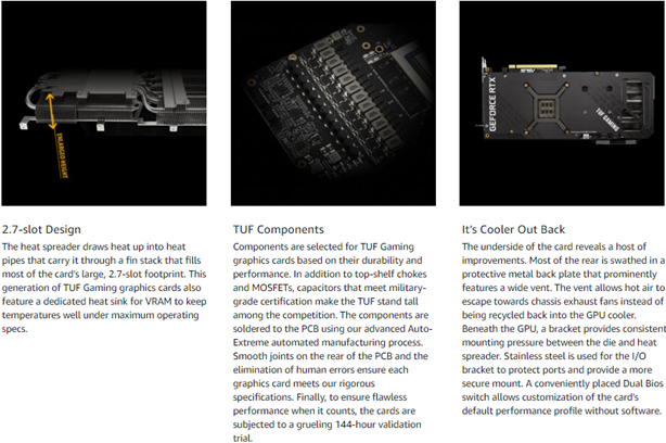 ASUS TUF Gaming NVIDIA GeForce RTX 3090 OC Edition Graphics Card- PCIe 4.0, 24GB GDDR6X, HDMI 2.1, DisplayPort 1.4a, Dual Ball Fan Bearings