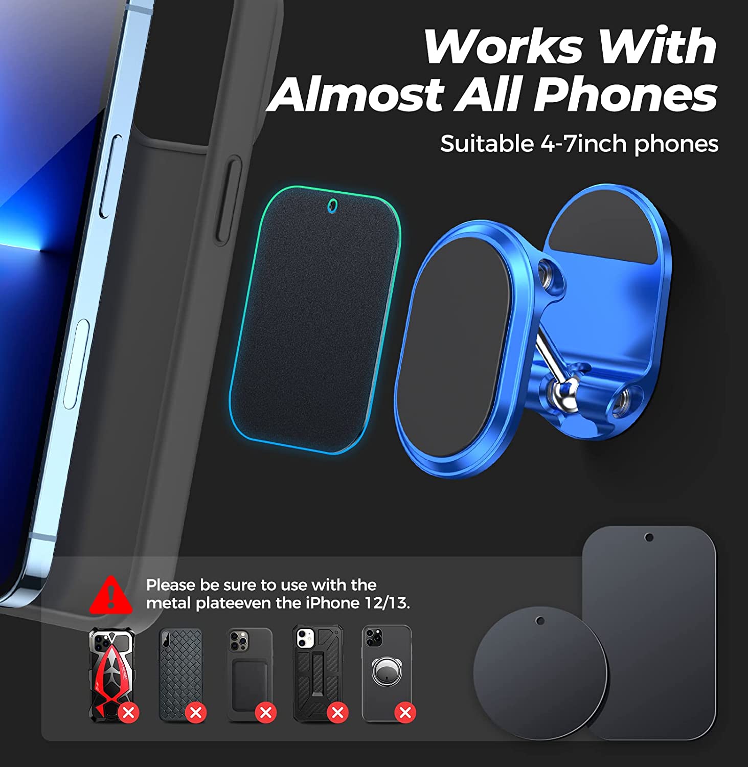 • Dual 360 degree and easy to install: The magnetic car phone holder is a portable accessory. It does not block any view while driving. Equipped with double 360 degree adjustable connector ball, you can adjust the angle of the phone at will. Please find detailed installation diagrams on the product page, correct installation can avoid a lot of unnecessary trouble.