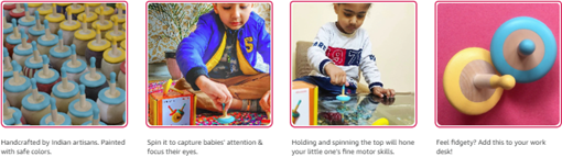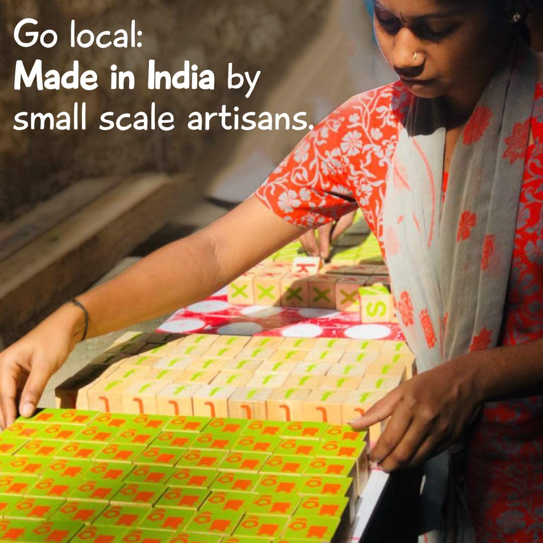 Handcrafted in India: 100% wood with non-toxic and environmental friendly paints.