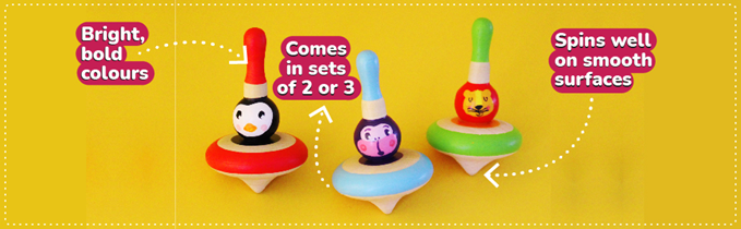 Spin for Fun - Set of 3 colorful spin tops for kids. It's an ageless toy, that you too can spin for fun.