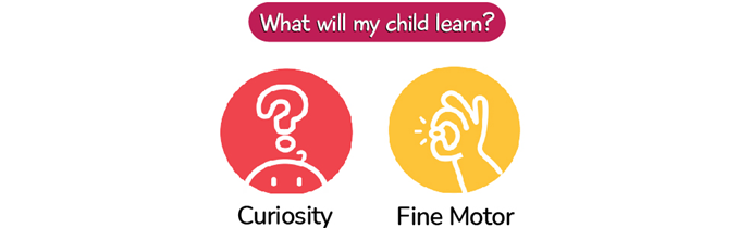 Skillset: Self discovery, hand eye coordination, logic building and learning