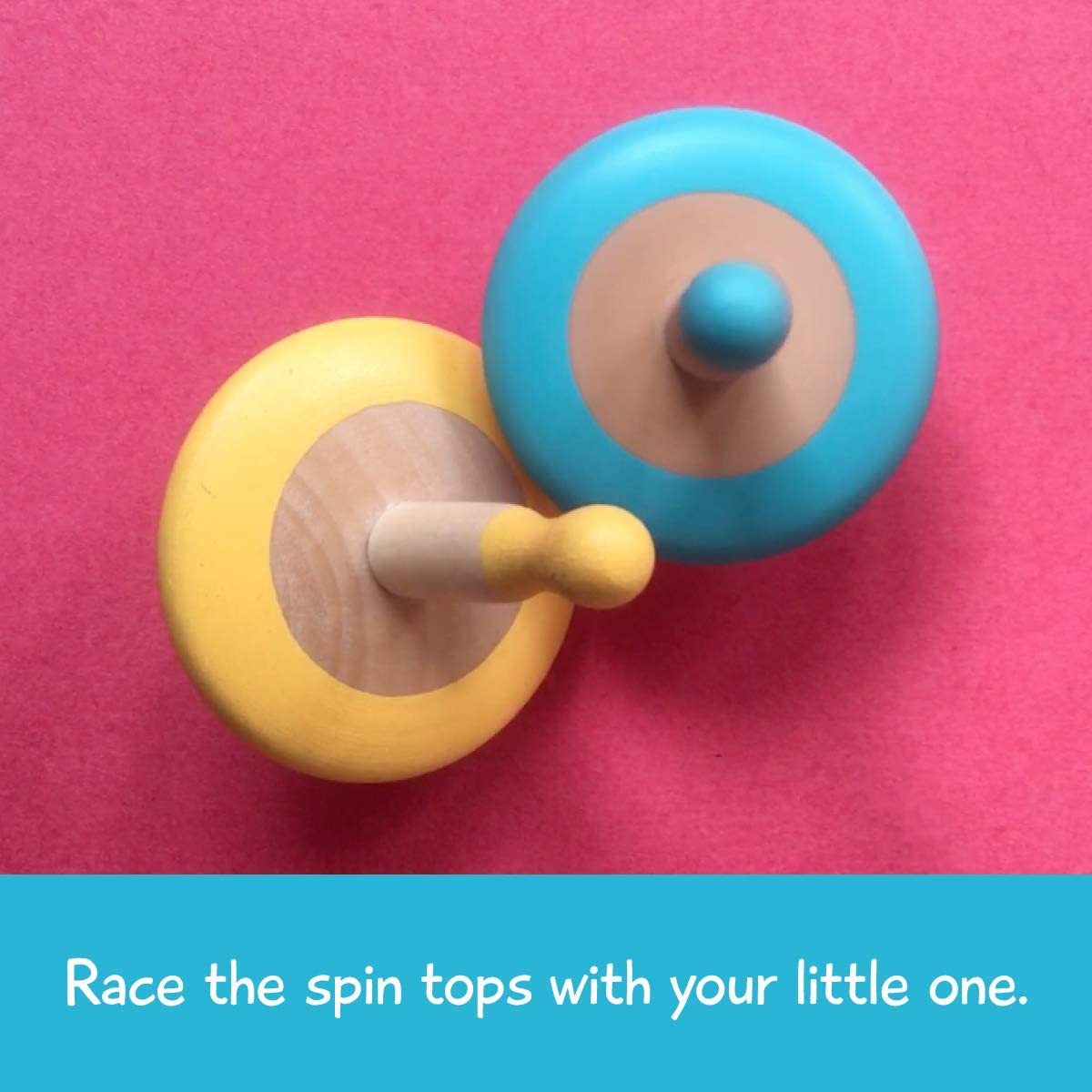 Shumee Colorful Organic Wooden Spinning Tops (3 Pcs)| Montessori & Kindergarten Toys for Balance & Coordination Skills| Gyroscope Fidget Spinner for Kids/Toddlers (3+ Yrs)