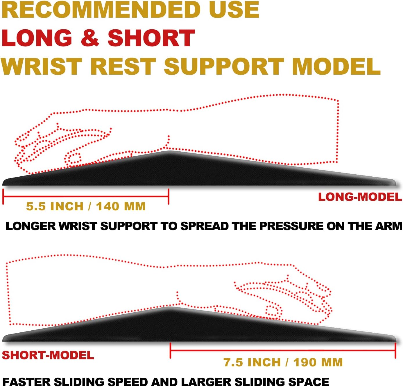 - ERGONOMIC DESIGN ? According to the structure of the human wrist, an ergonomic 8° inclination angle curve is designed to fit the wrist evenly and closely, reduce wrist pressure and avoid carpal tunnel pain.