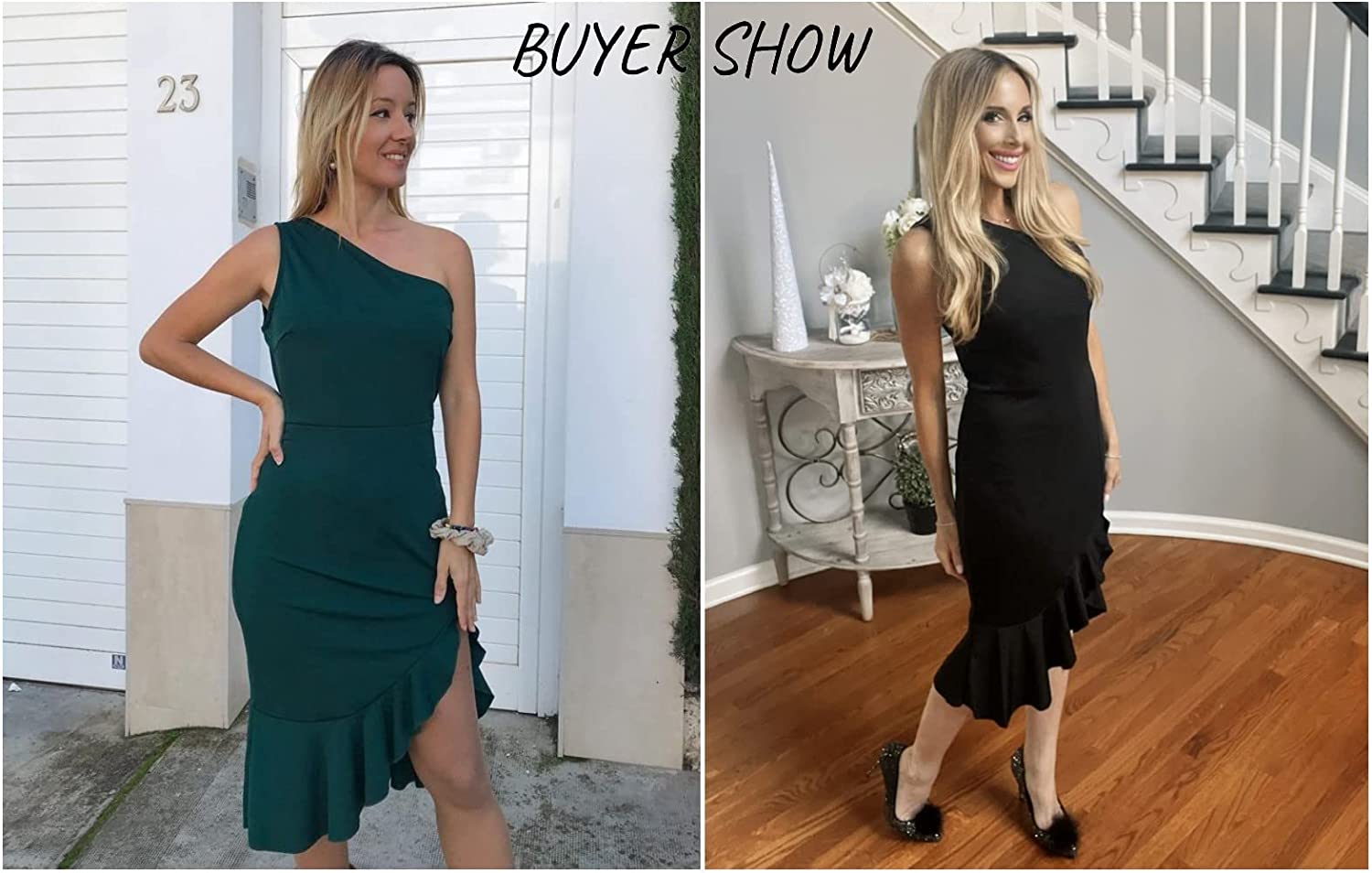 • Design: One shoulder, sleeveless, side slit ruffle hem, knee length, elegant bodycon dress, zipper closure, slim style can perfectly show your charming figure