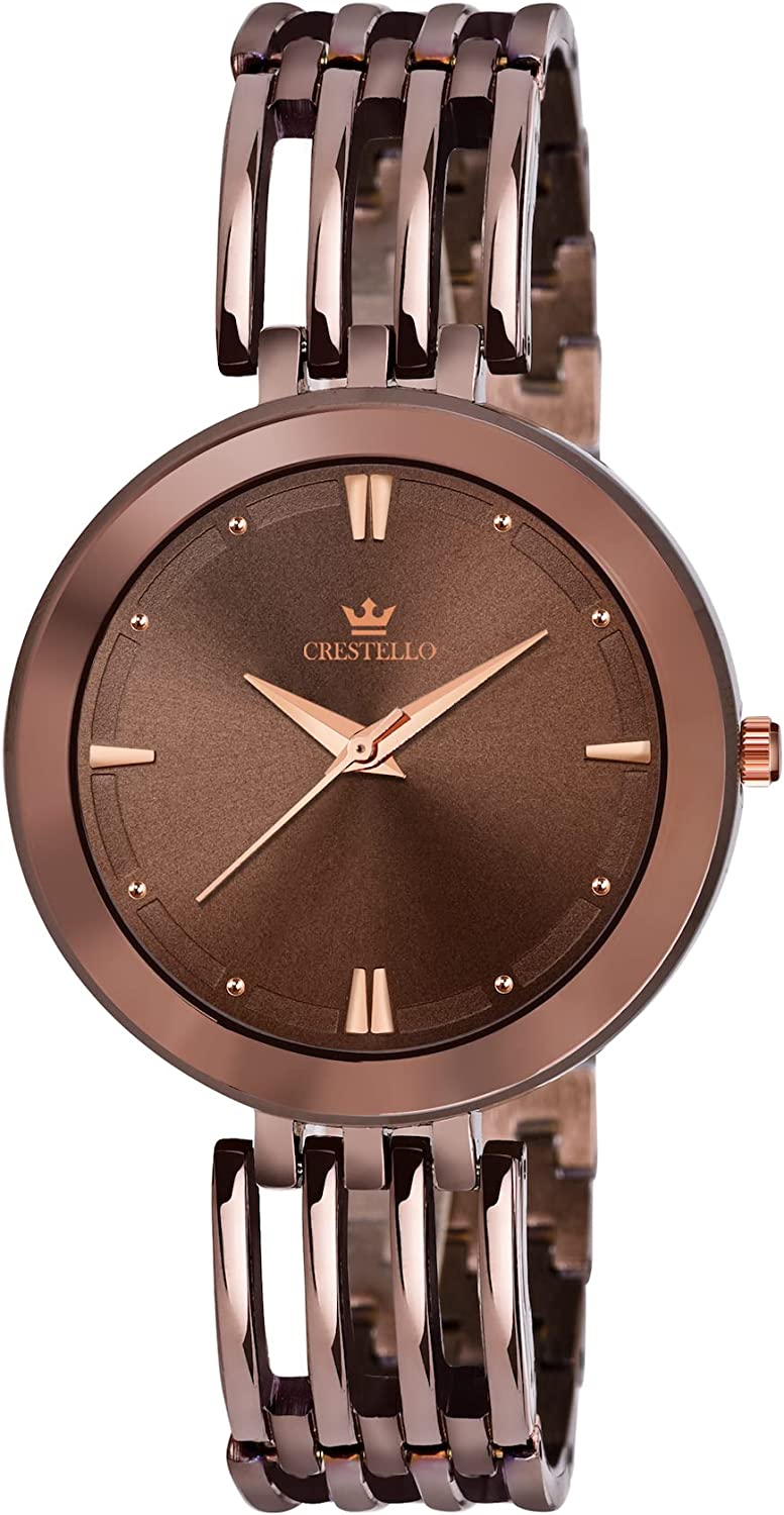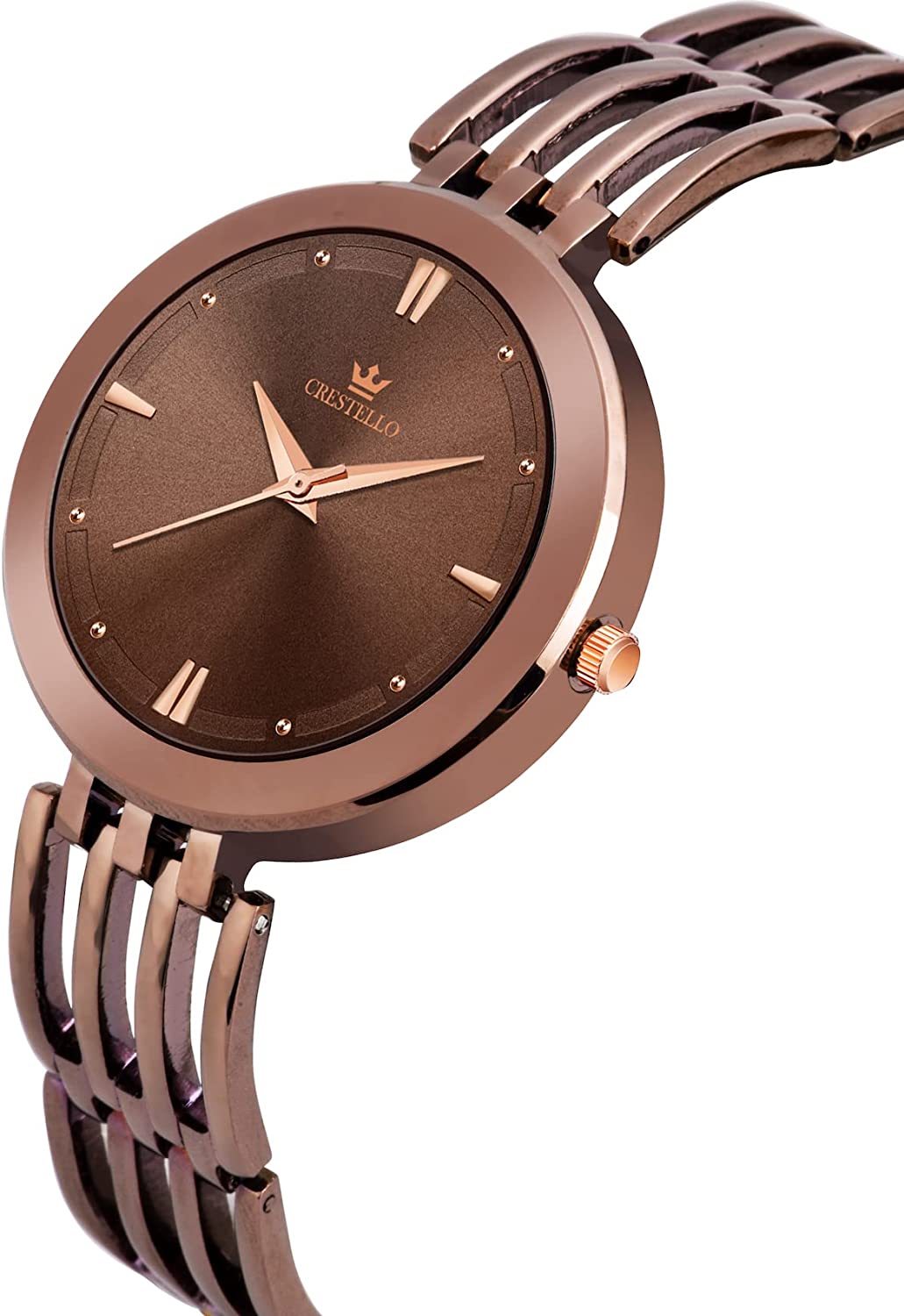 Crestello Rose Gold/Brown Plated Bracelet Analog Wrist Watch for Women