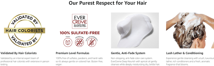 • Sulfate-Free Shampoo For Dry Hair: EverCreme Deep Nourish Shampoo gently cleanses dry, brittle hair with deep moisture for silky-soft texture and shine without weigh down; Hair looks healthier after the 1st use