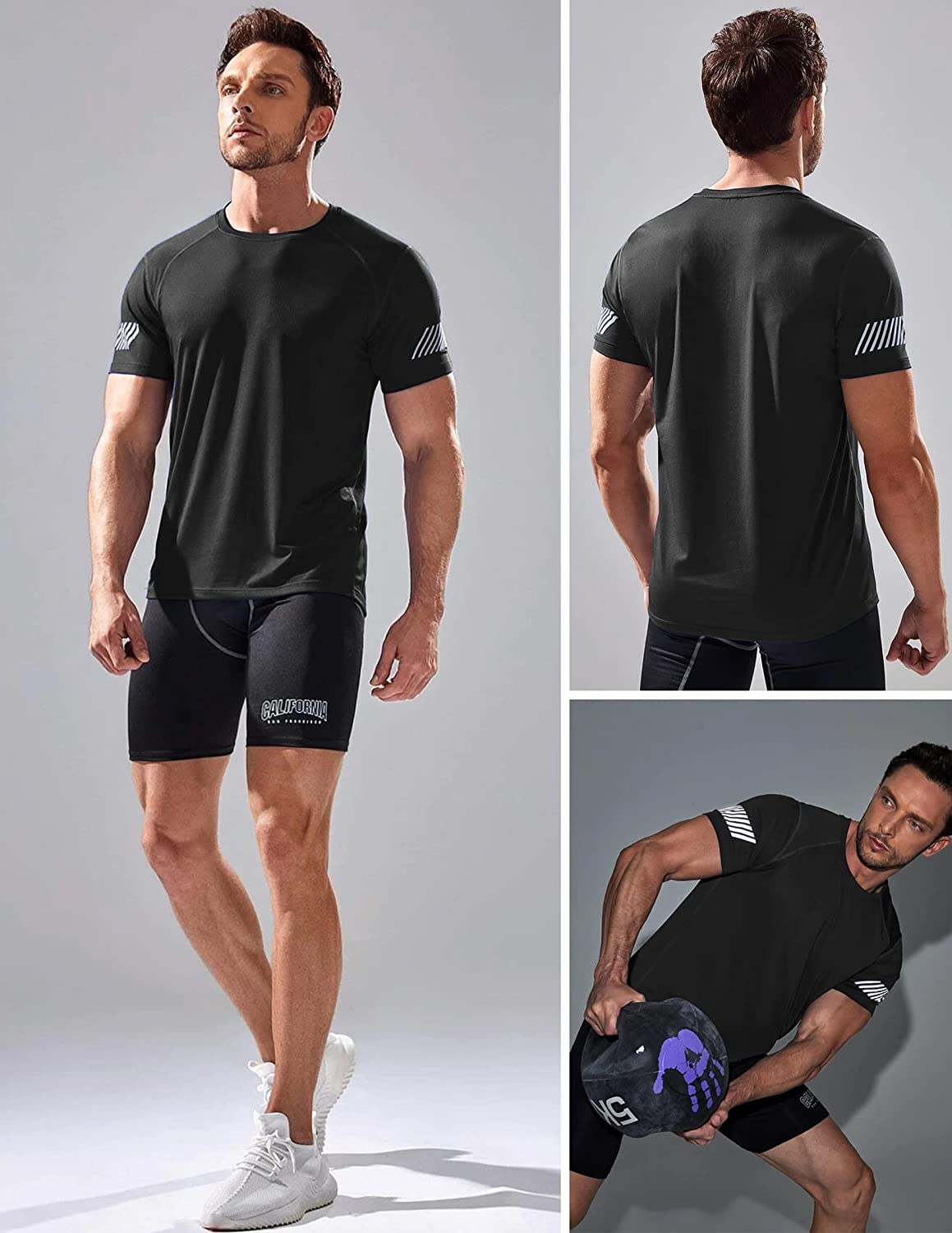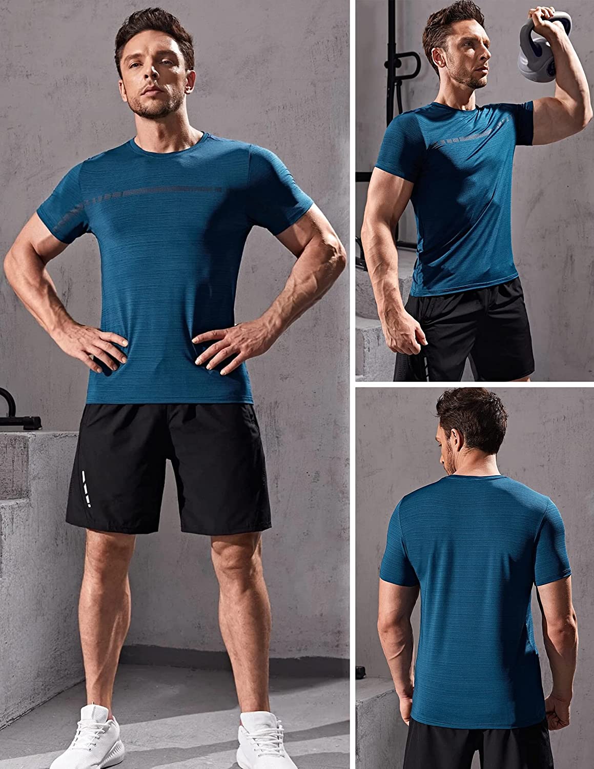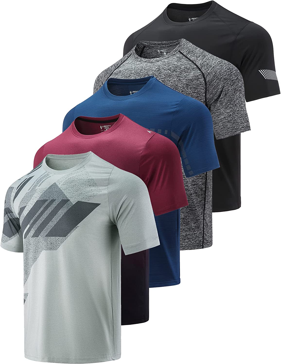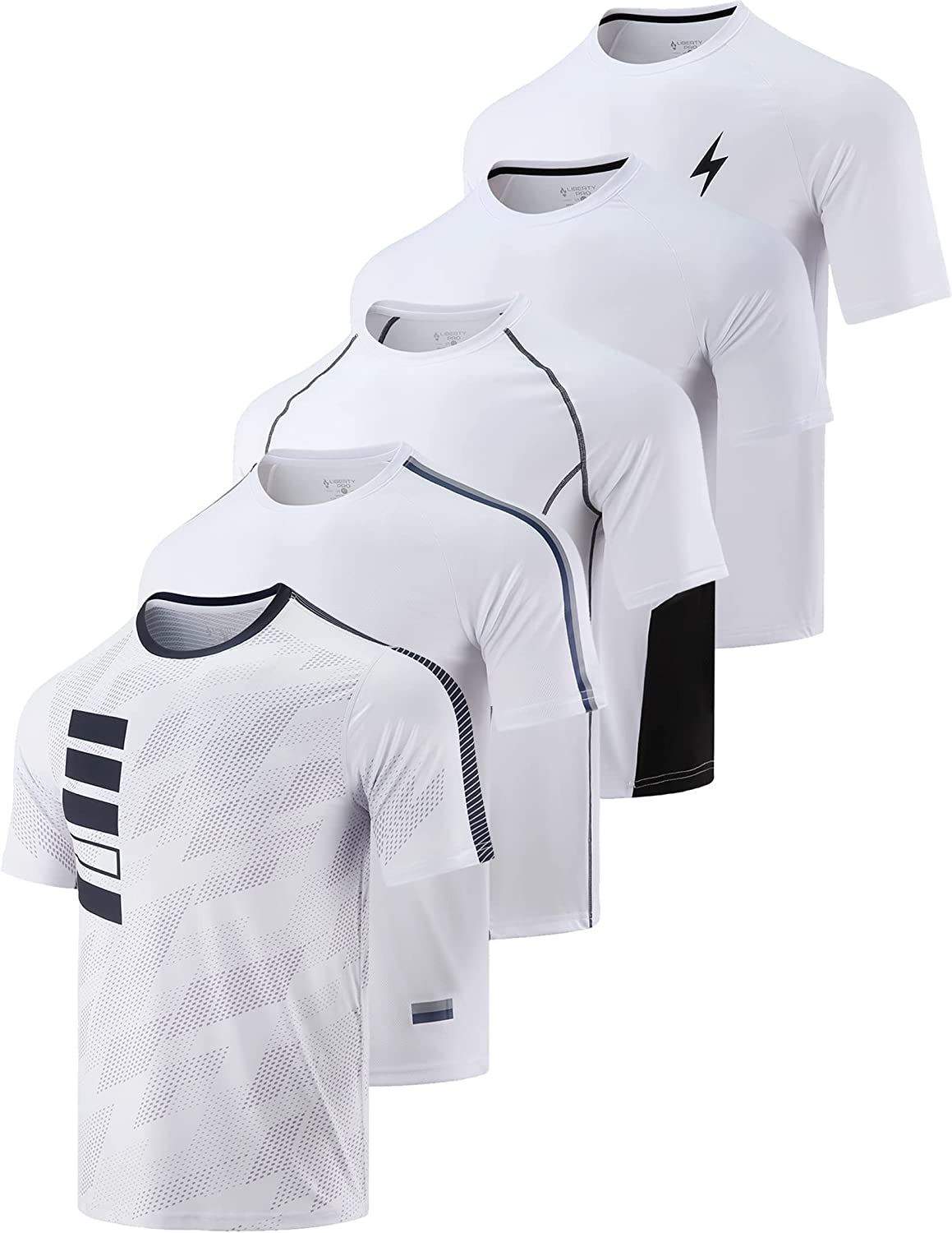 5 Pack Men’s Active Quick Dry Crew Neck T Shirts | Athletic Running Gym Workout Short Sleeve Tee Tops Bulk